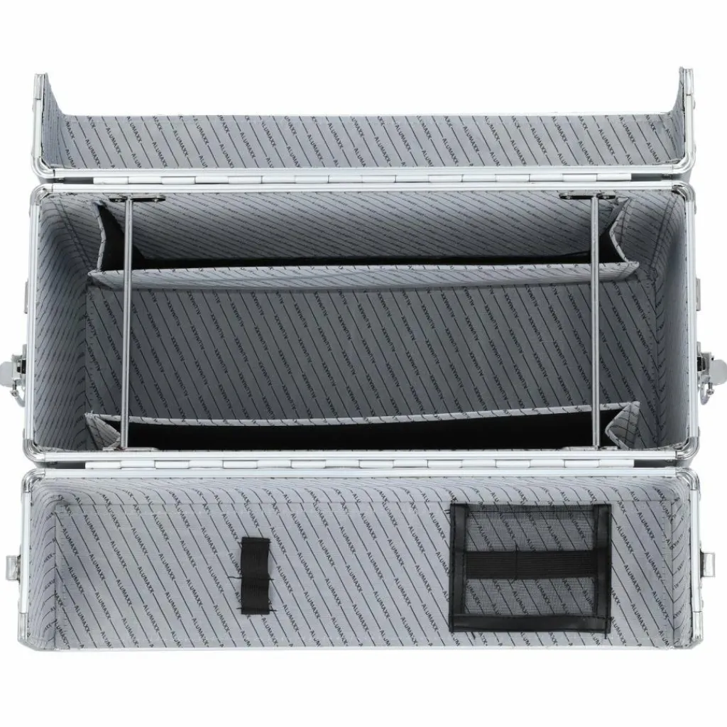 - Extras: Tragegriff, Stiftelaschen, Organizer, Fächer für A4 Unterlagen, Bodennägel