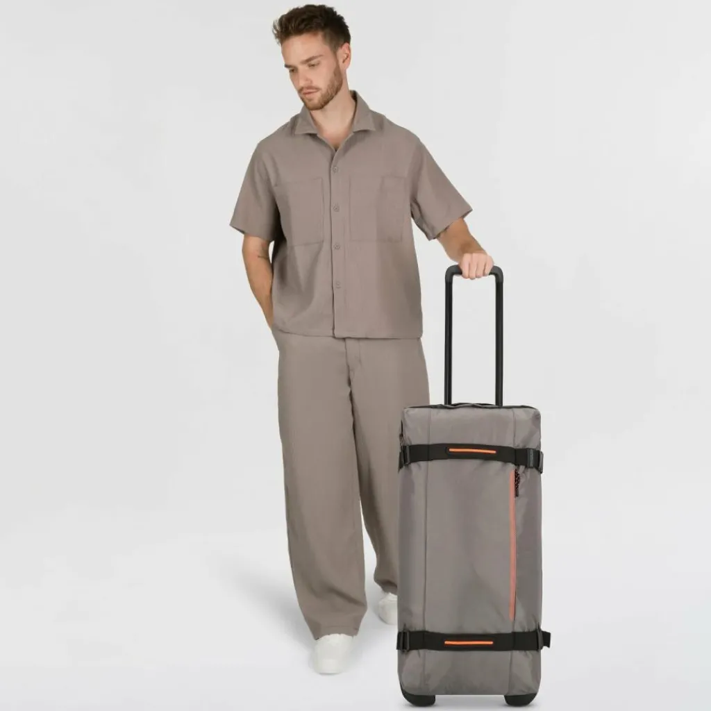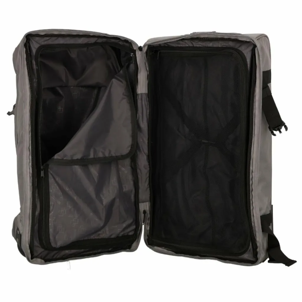- Ausstattung: Wäschefach, Tasche(n) außen, Reißverschlussfach, Netzfach, Kreuzpackgurt, arretierbarer Griff