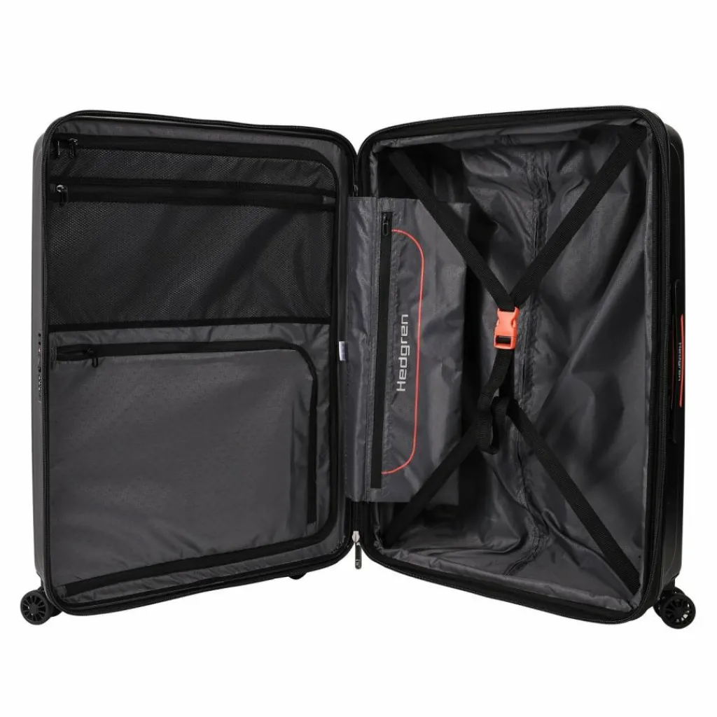 - Ausstattung:Tasche(n) innen, Reißverschlussfach, Netzfach, Dehnfalte, arretierbarer Griff