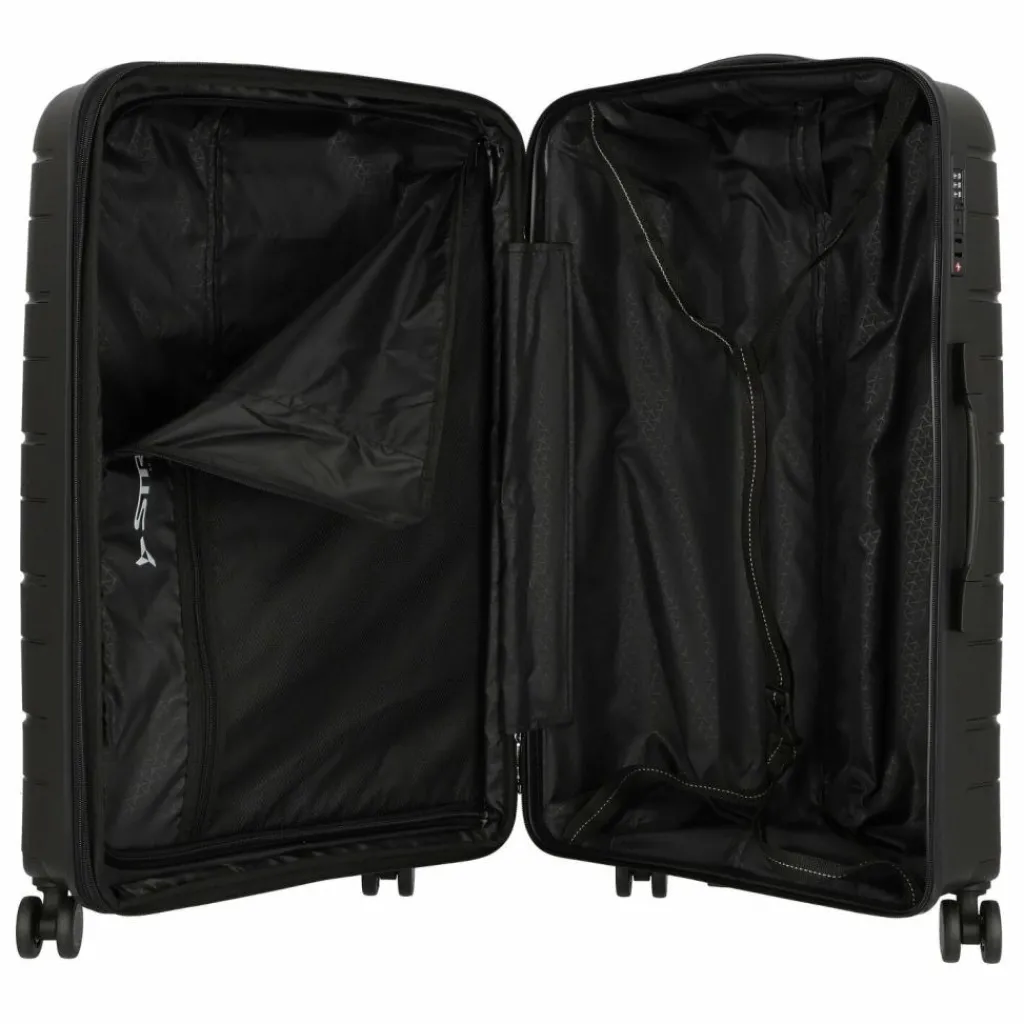 - Ausstattung:Wäschefach, Reißverschlussfach, Kreuzpackgurt, Dehnfalte, arretierbarer Griff