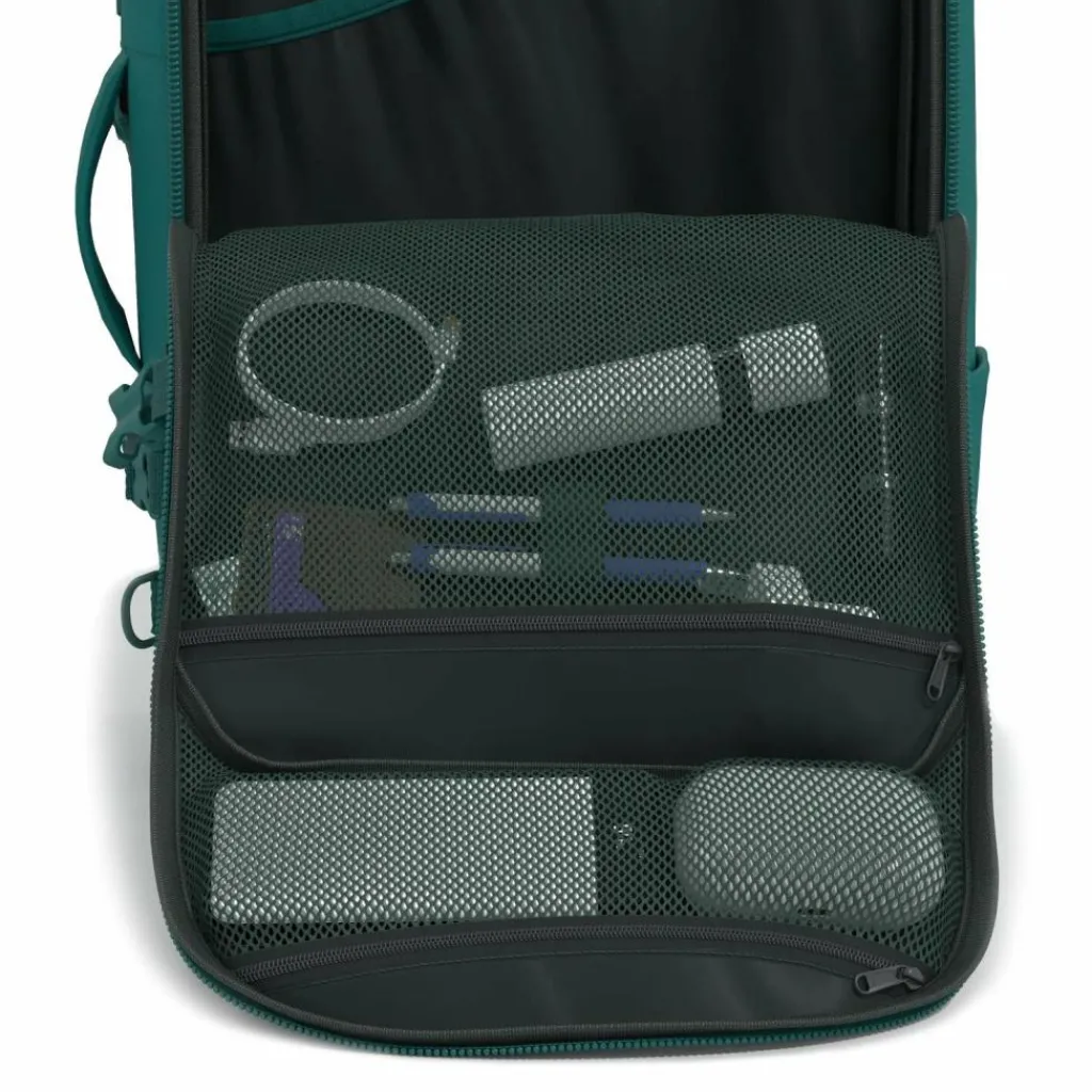 - Ausstattung: Weltweite Gepäckortung, Tasche(n) innen, Tasche(n) außen, Rückenpolsterung, Reißverschlussfach, Netzfach, auf Trolley steckbar