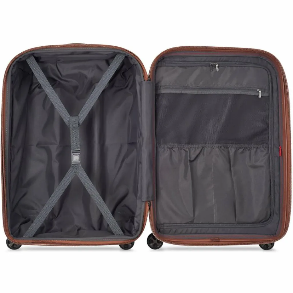 - Ausstattung: Wäschefach, Tasche(n) innen, Reißverschlussfach, Netzfach, Kreuzpackgurt, Dehnfalte, arretierbarer Griff