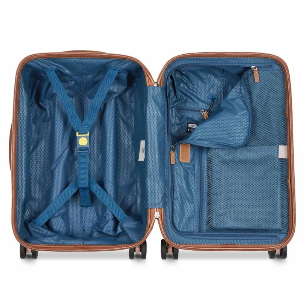 - Ausstattung: Reißverschlussfach, Netzfach, Kreuzpackgurt, arretierbarer Griff, Anschluss für USB-Powerbank