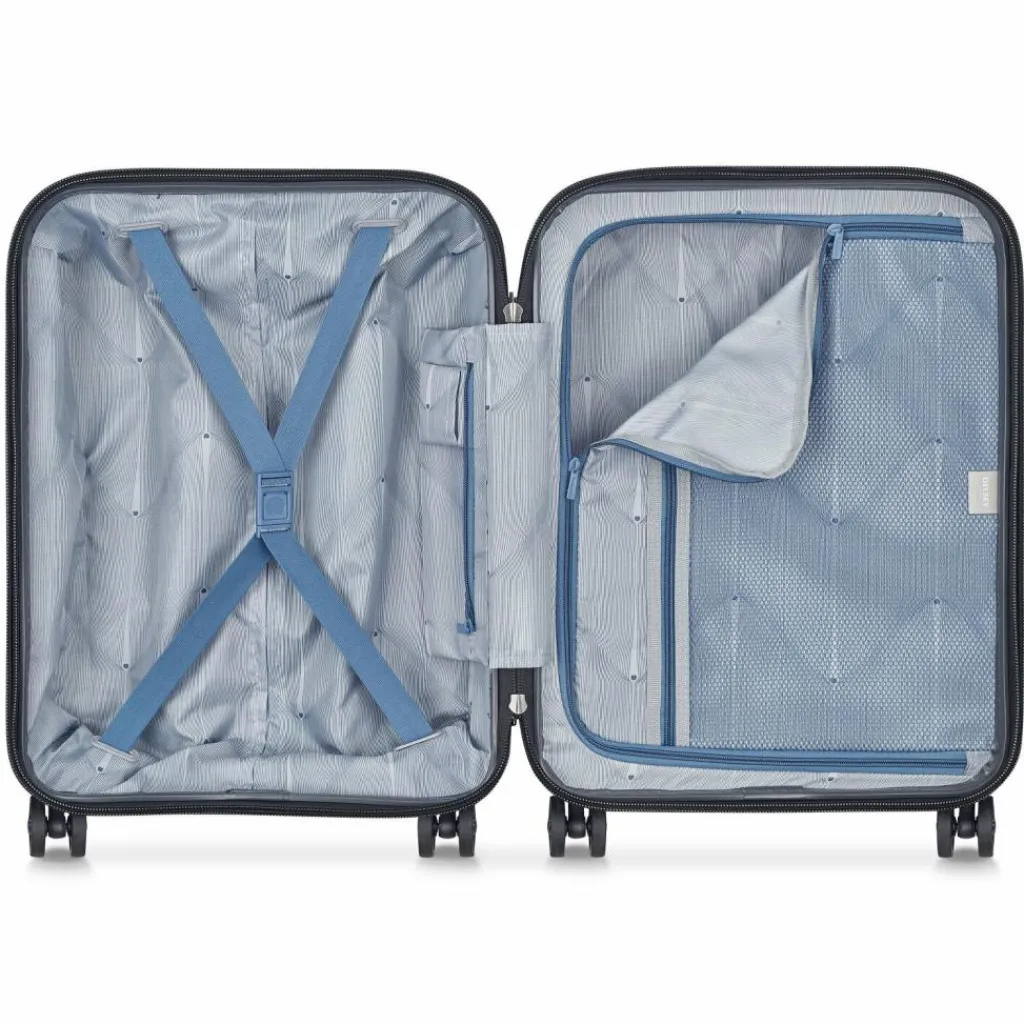 - Ausstattung: Wäschefach, Reißverschlussfach, Netzfach, Kreuzpackgurt, arretierbarer Griff