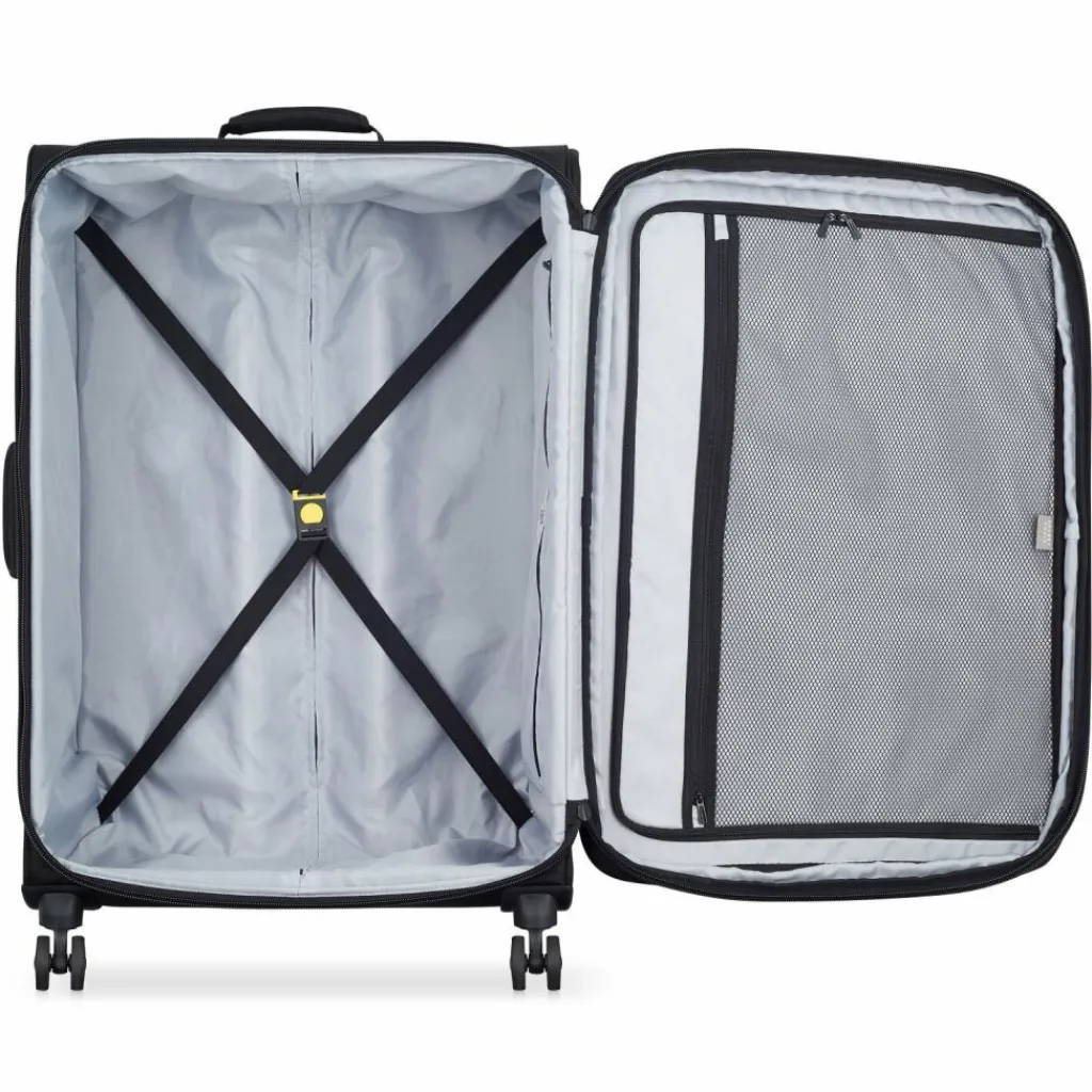 - Ausstattung: Tasche(n) außen, Netzfach, Kreuzpackgurt, Dehnfalte, arretierbarer Griff