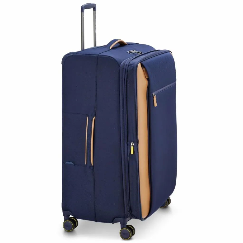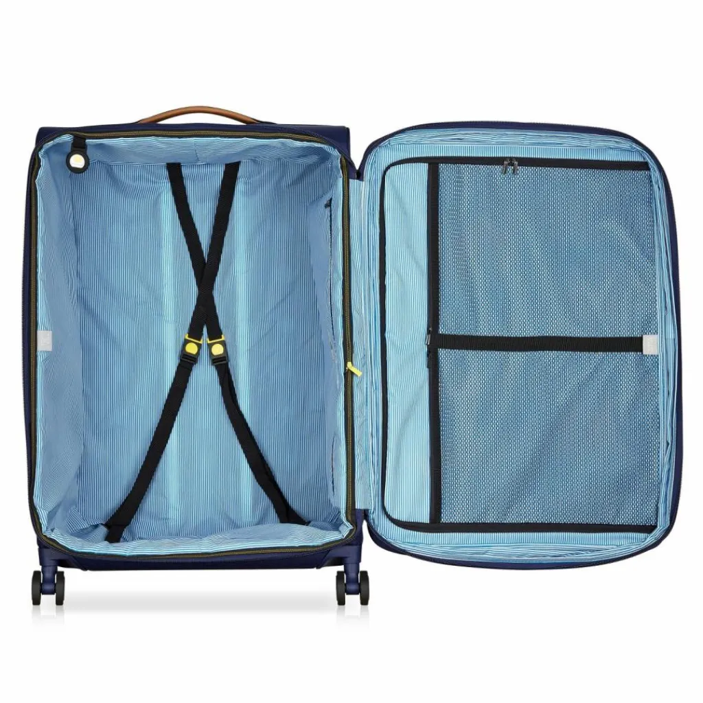 - Ausstattung: Wäschefach, Tasche(n) außen, Netzfach, Kreuzpackgurt, Dehnfalte, arretierbarer Griff