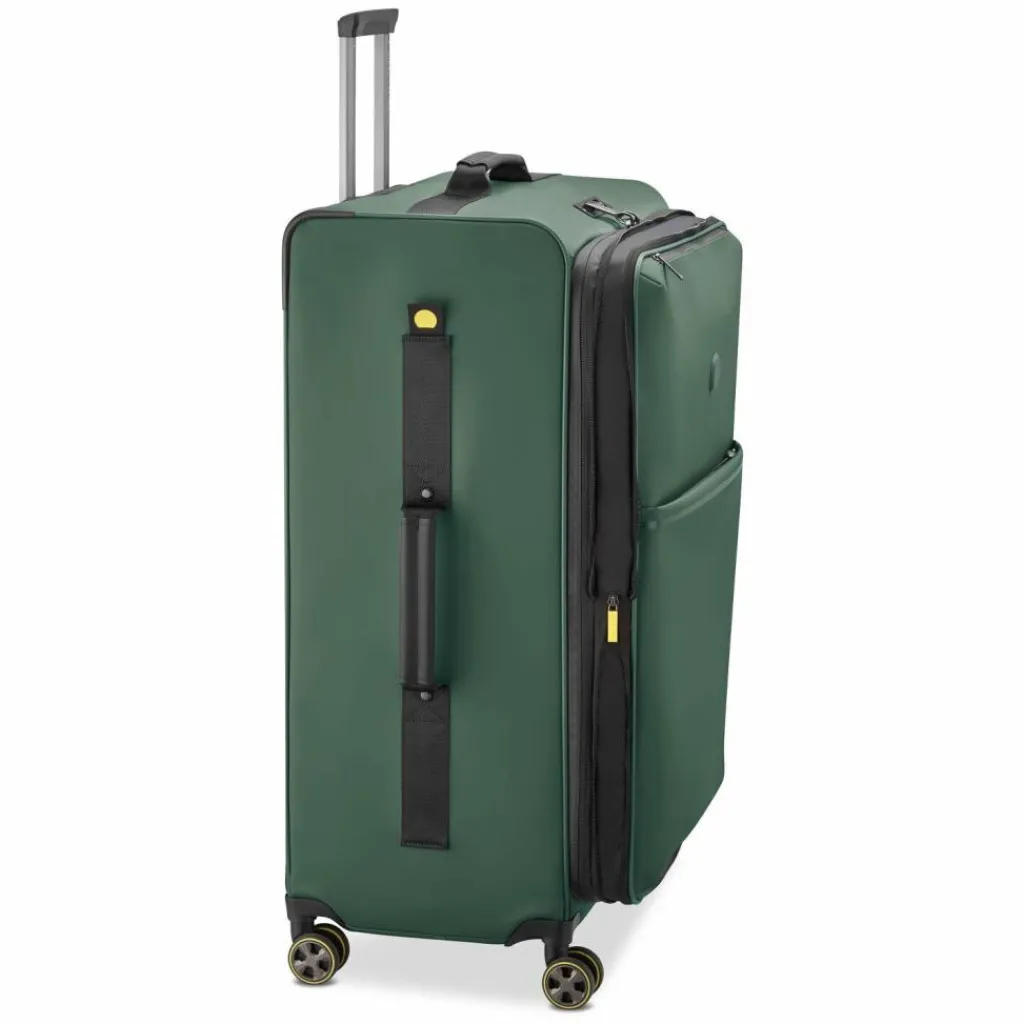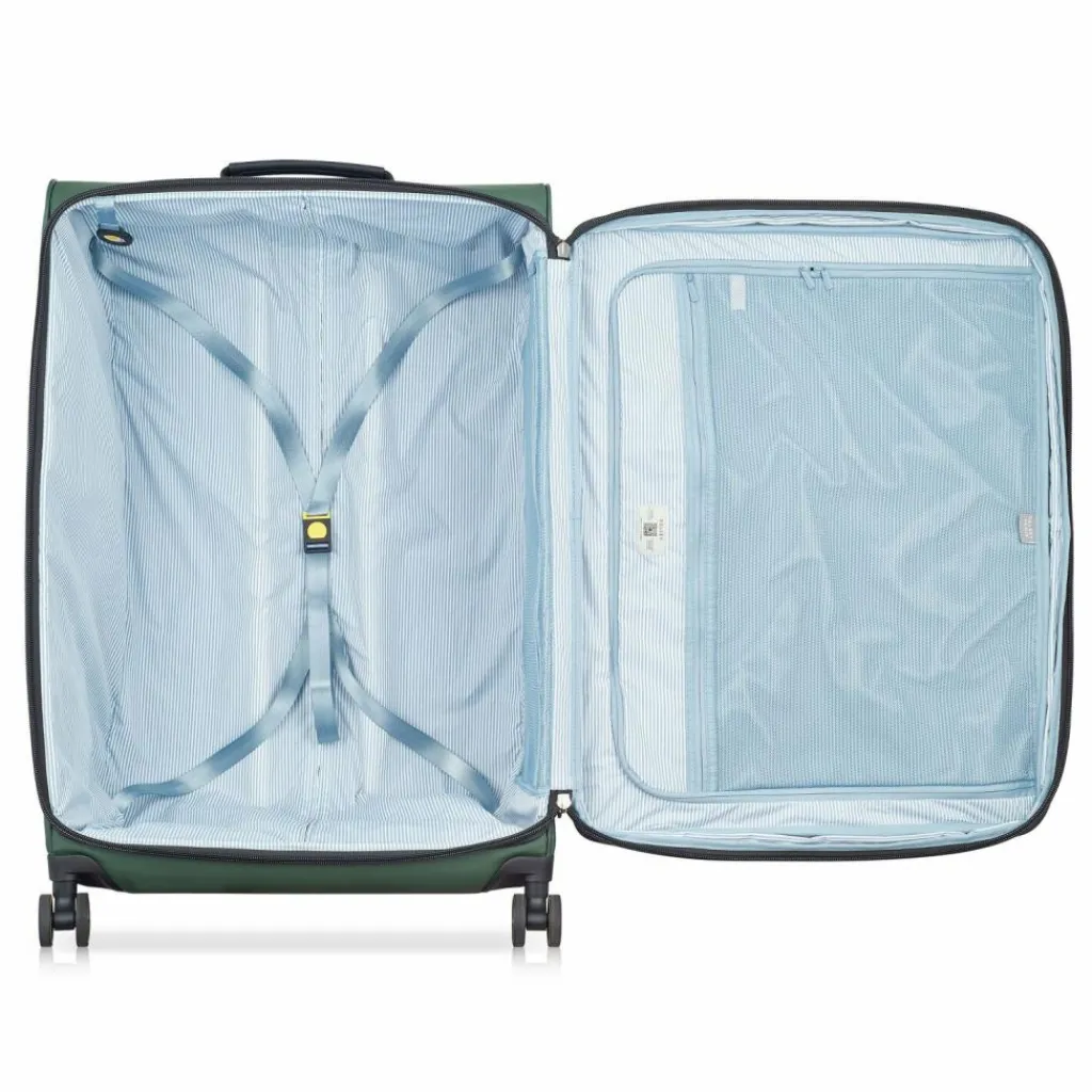 - Ausstattung: Tasche(n) innen, Tasche(n) außen, Reißverschlussfach, Netzfach, Kreuzpackgurt, Dehnfalte, arretierbarer Griff