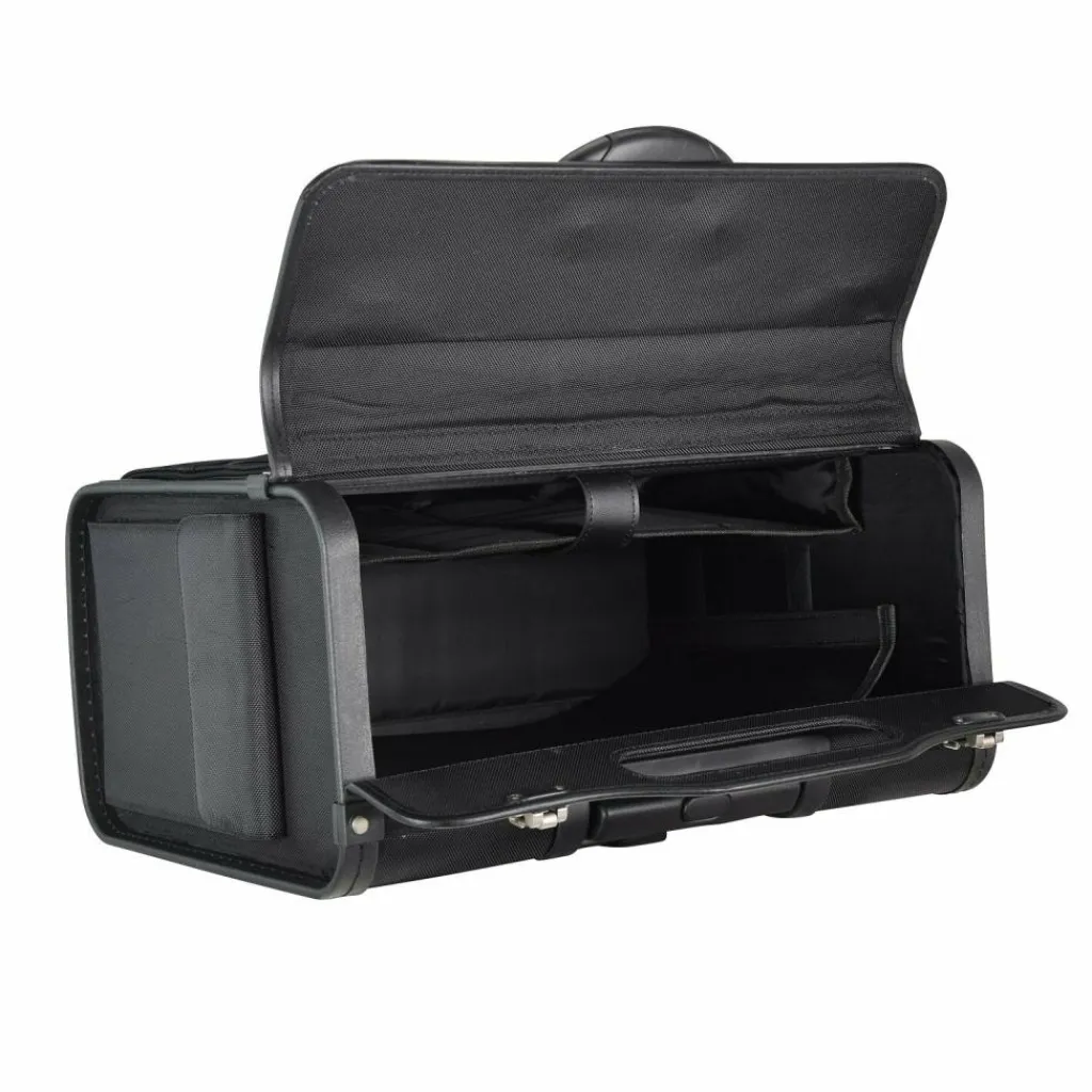 - Ausstattung: Tasche(n) innen, Tasche(n) außen, Platz für großen Aktenordner, Innenfutter, arretierbarer Griff