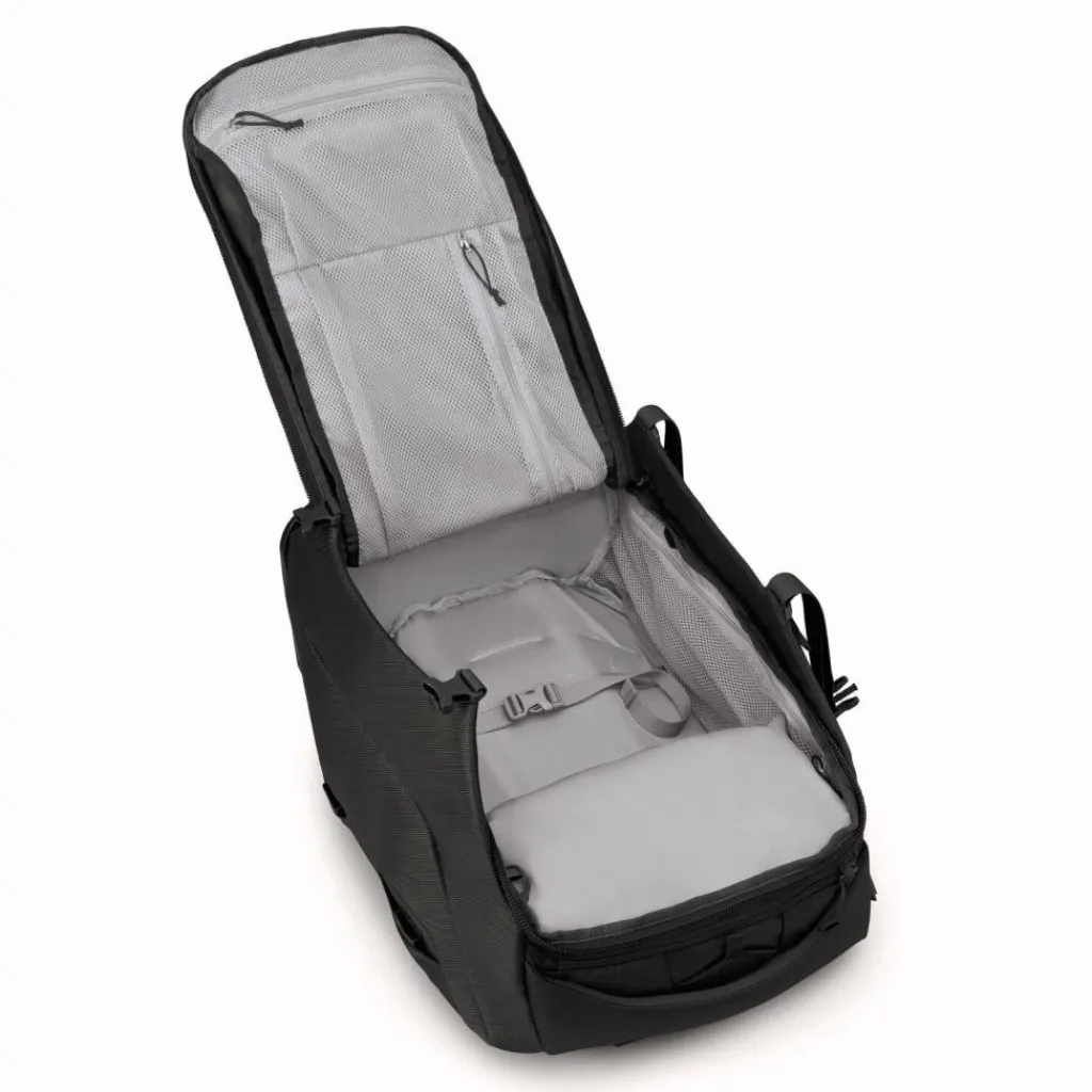 - Ausstattung:Tasche(n) außen, Reißverschlussfach, Netzfach, Kompressionsriemen, arretierbarer Griff