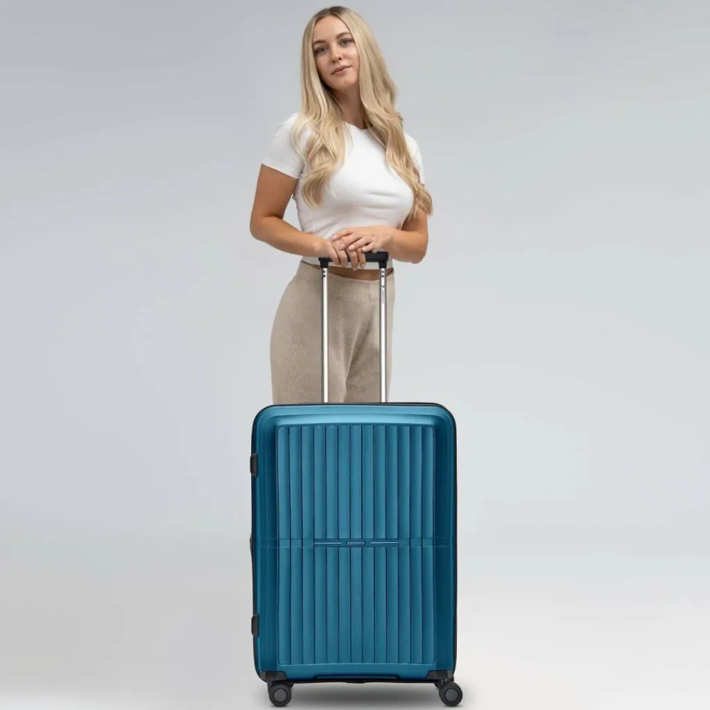 - Ausstattung:Tasche(n) innen, Reißverschlussfach, Kreuzpackgurt, Dehnfalte, arretierbarer Griff