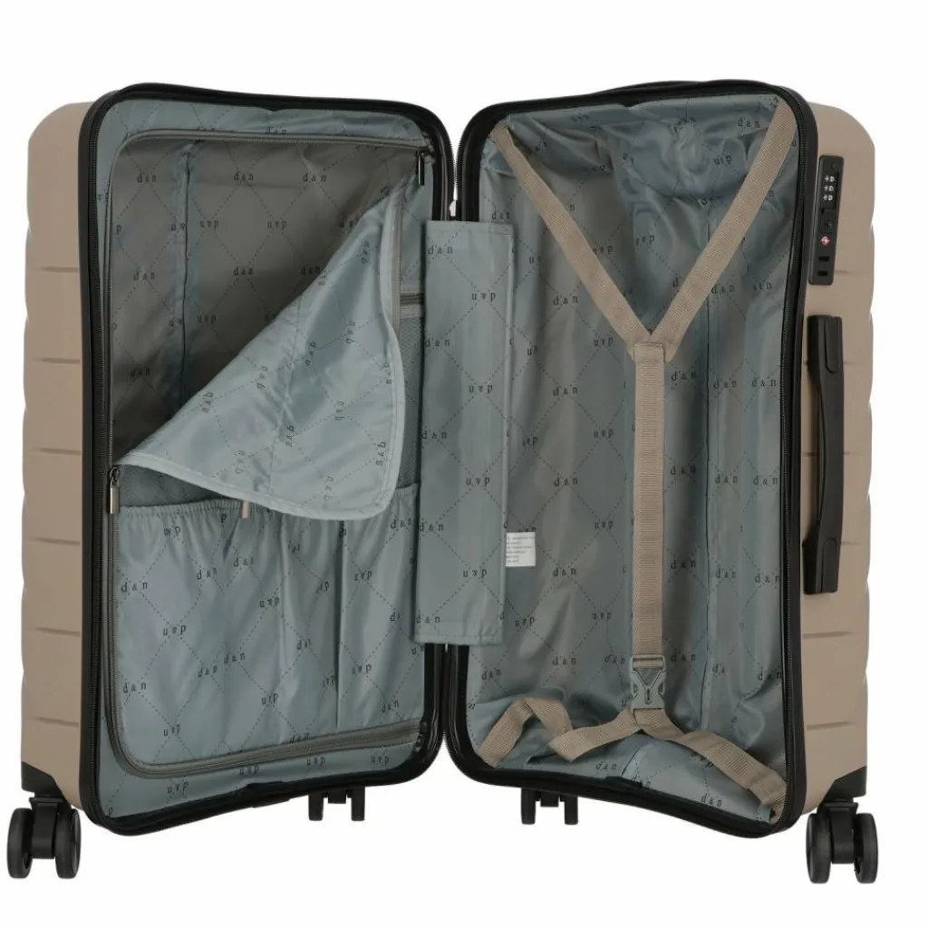 - Ausstattung: Wäschefach, Tasche(n) innen, Reißverschlussfach, Kreuzpackgurt, arretierbarer Griff