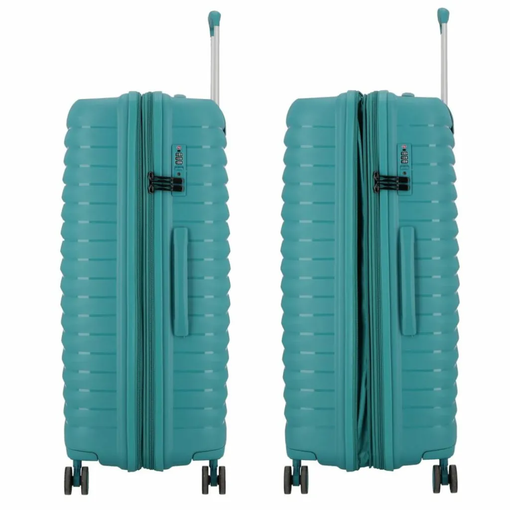 - Ausstattung: Wäschefach, Reißverschlussfach, Kreuzpackgurt, Dehnfalte, arretierbarer Griff