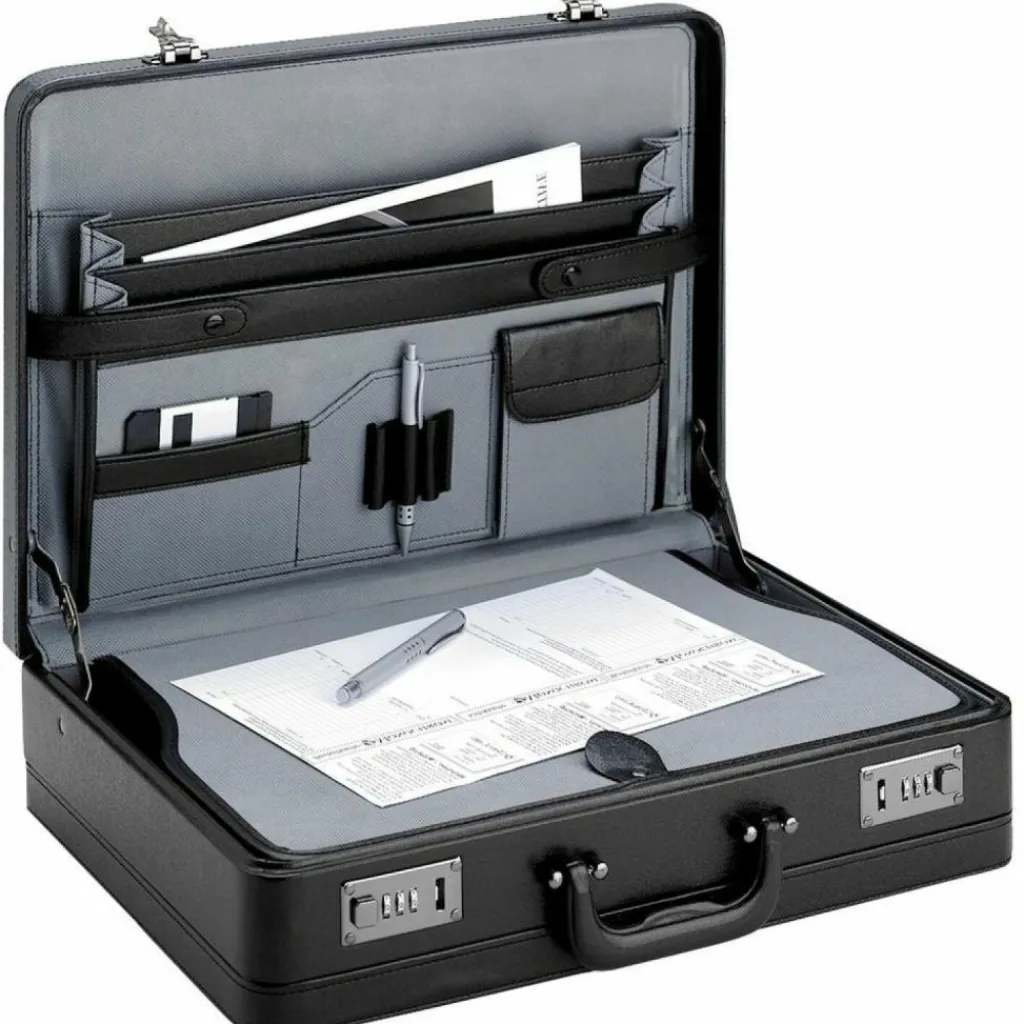 - Ausstattung: Trenn-/Packplatte, Tasche(n) innen, Platz für großen Aktenordner, Innenfutter, Dehnfalte