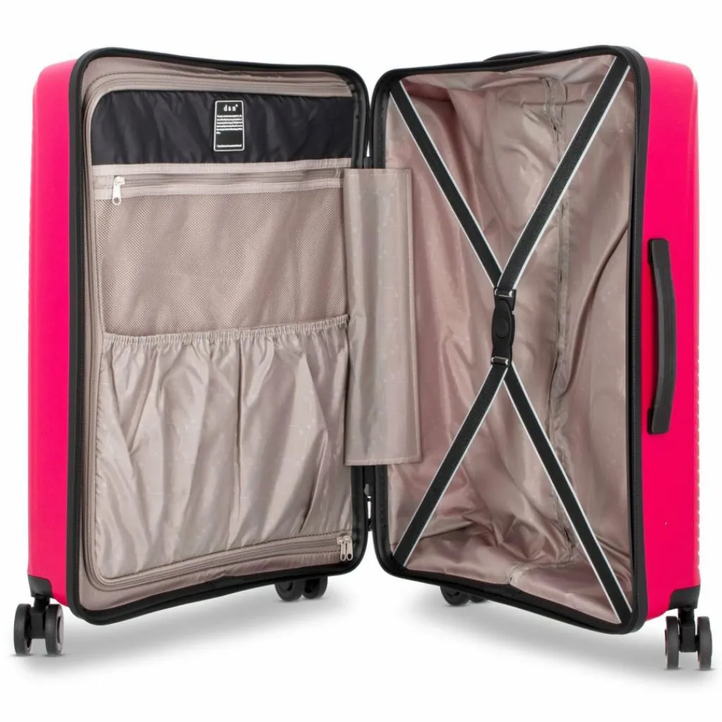 - Ausstattung: Wäschefach, Tasche(n) innen, Reißverschlussfach, Netzfach, Kreuzpackgurt, arretierbarer Griff