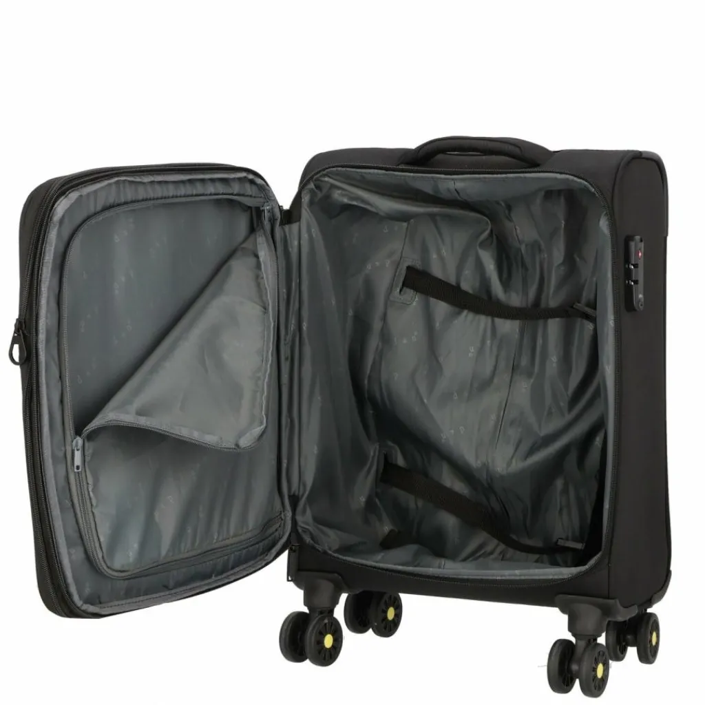- Ausstattung: Wäschefach, Tasche(n) innen, Tasche(n) außen, Dehnfalte, arretierbarer Griff