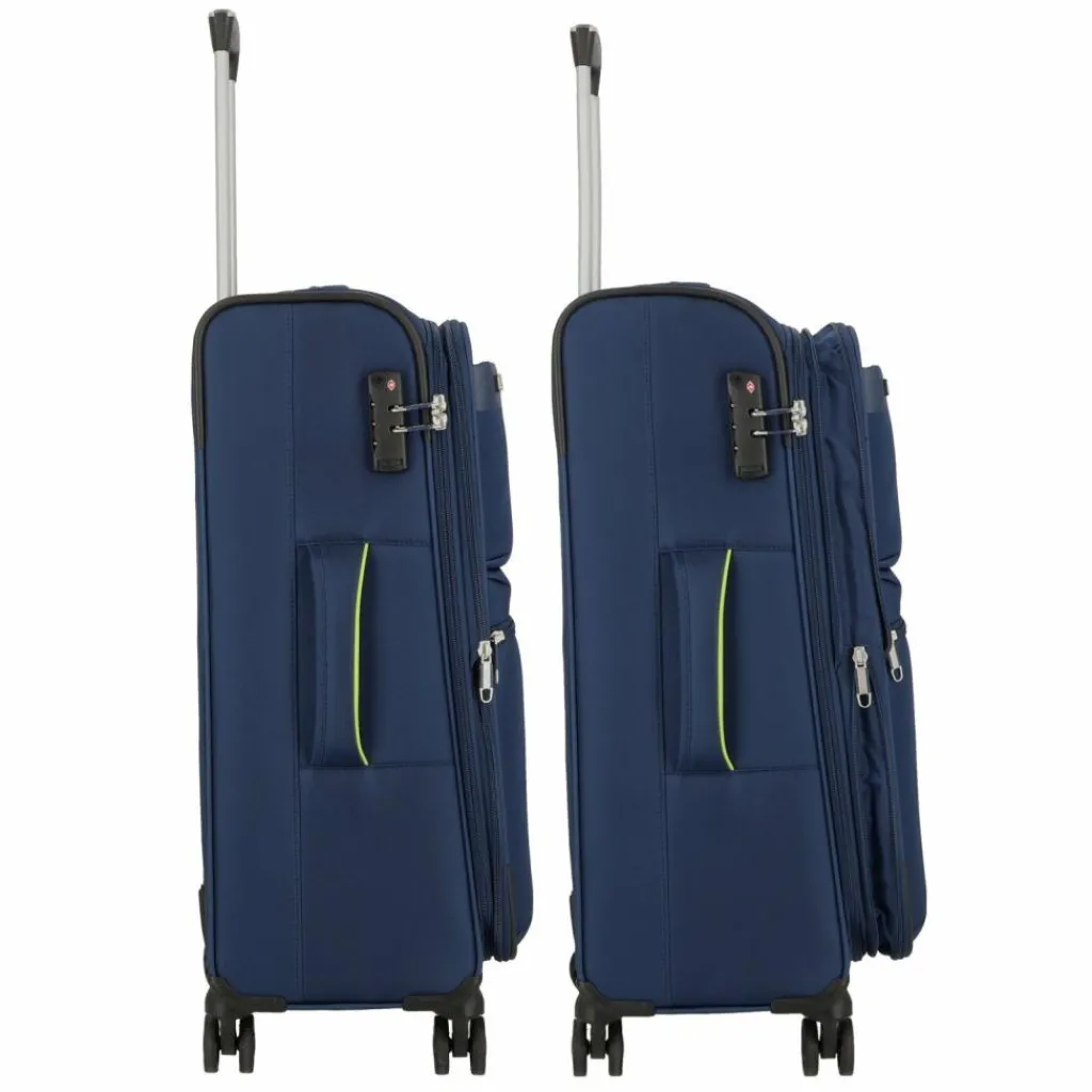 - Ausstattung: Tasche(n) außen, Reißverschlussfach, Dehnfalte, arretierbarer Griff