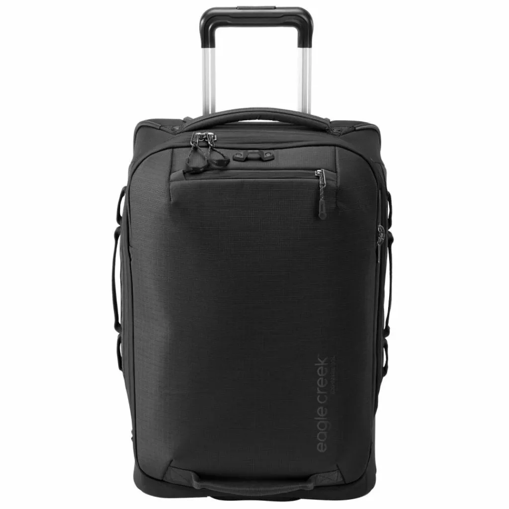 - Ausstattung: Tasche(n) außen, Reißverschlussfach, Netzfach, Kreuzpackgurt, Dehnfalte, arretierbarer Griff