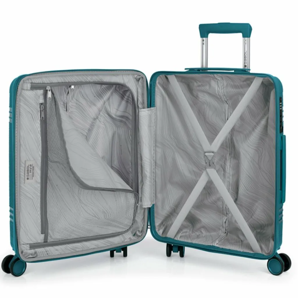 - Ausstattung: Wäschefach, Reißverschlussfach, Kreuzpackgurt, Dehnfalte, arretierbarer Griff