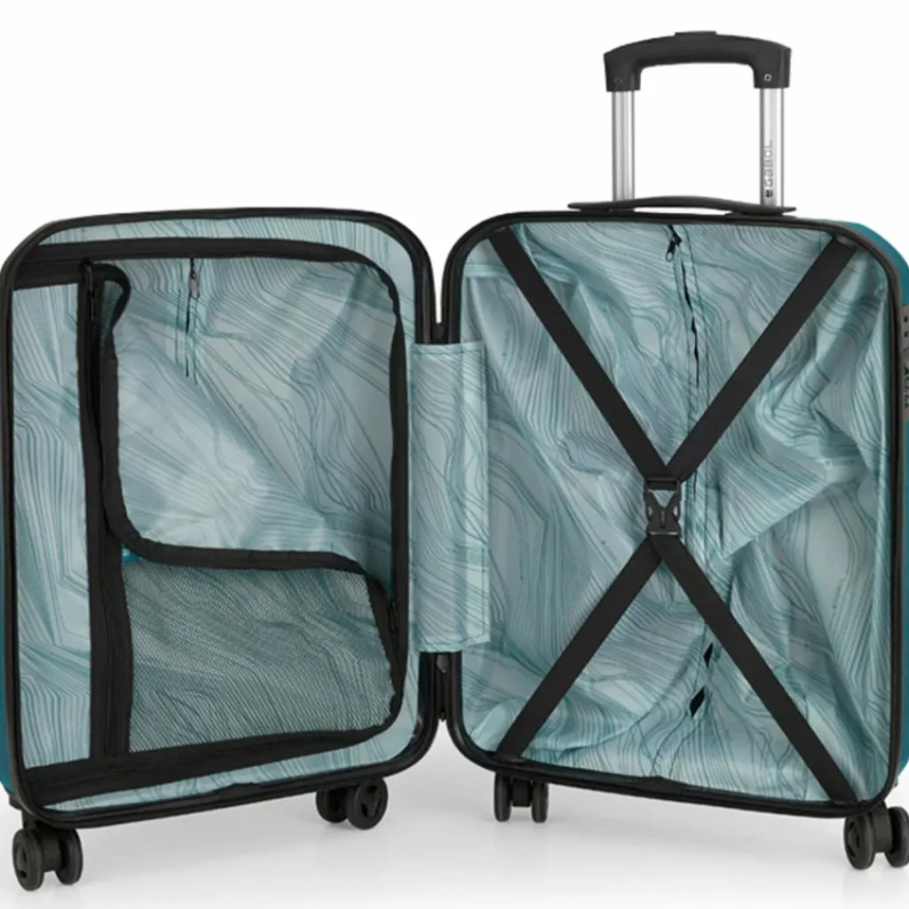 - Ausstattung: Wäschefach, Reißverschlussfach, Kreuzpackgurt, auf Trolley steckbar