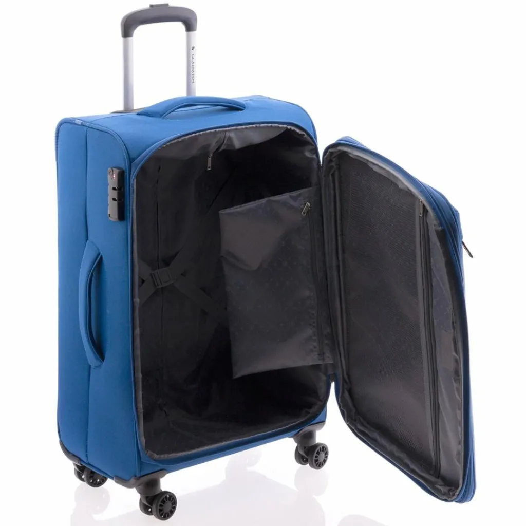 - Ausstattung: Tasche(n) außen, Reißverschlussfach, Kreuzpackgurt, Dehnfalte, arretierbarer Griff