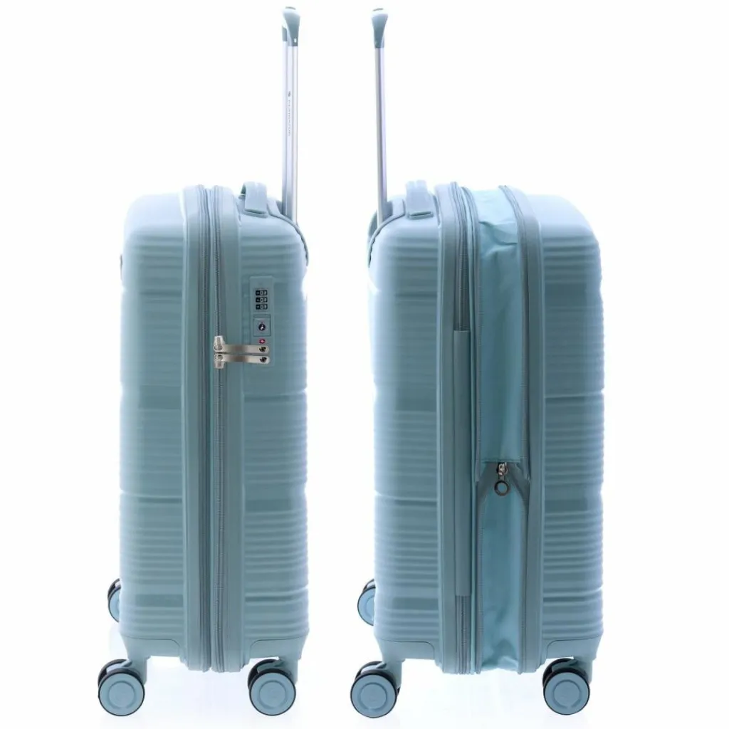 - Ausstattung: Wäschefach, Reißverschlussfach, Kreuzpackgurt, Dehnfalte, arretierbarer Griff