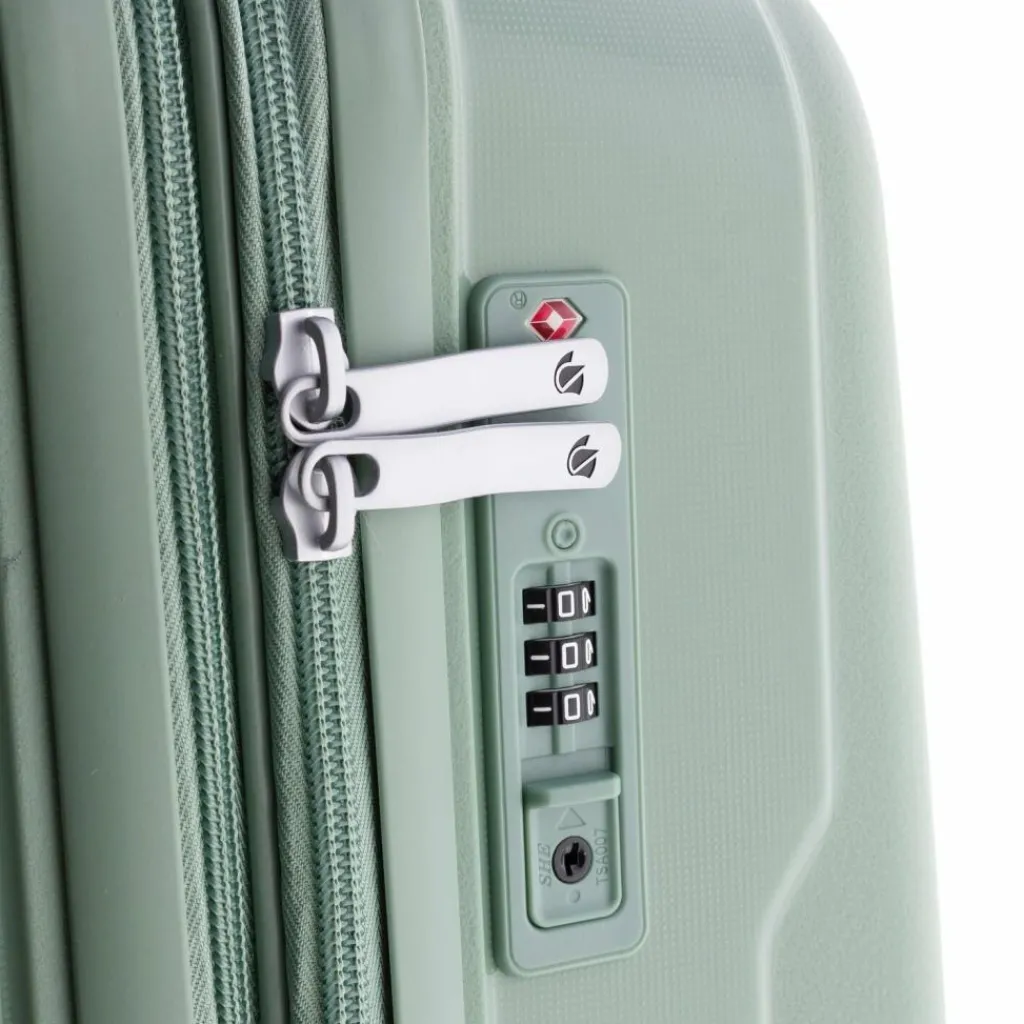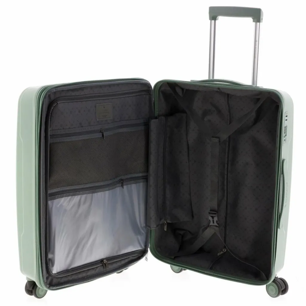 - Ausstattung: Wäschefach, Reißverschlussfach, Kreuzpackgurt, Dehnfalte, arretierbarer Griff