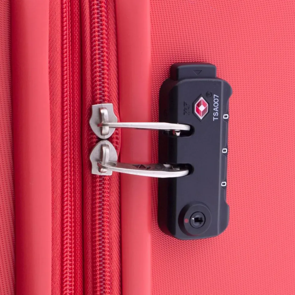 - Ausstattung: Wäschefach, Reißverschlussfach, Kreuzpackgurt, Dehnfalte, arretierbarer Griff