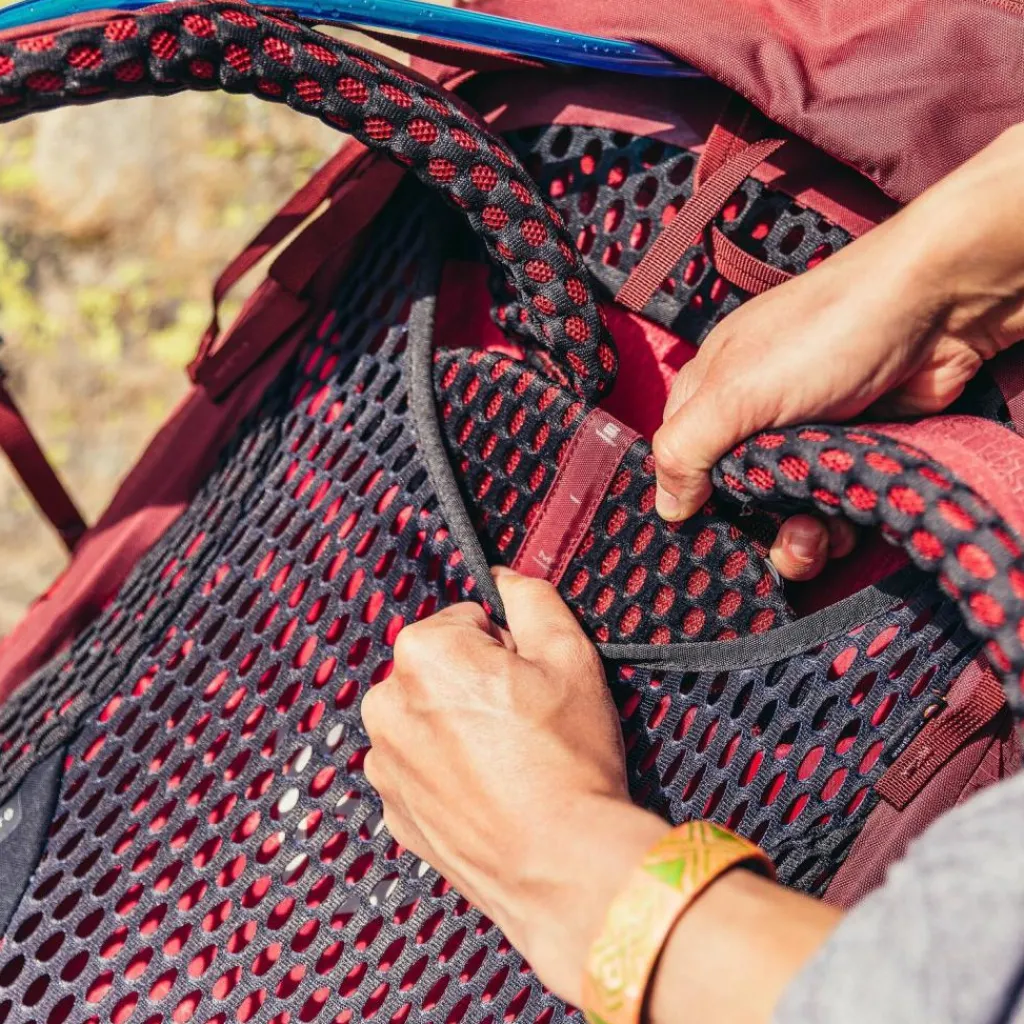 - Ausstattung: Tasche(n) innen, Tasche(n) außen, Rückenpolsterung, Reißverschlussfach, Netzfach, ergonomisch geformtes Rückensystem, Beckengurt