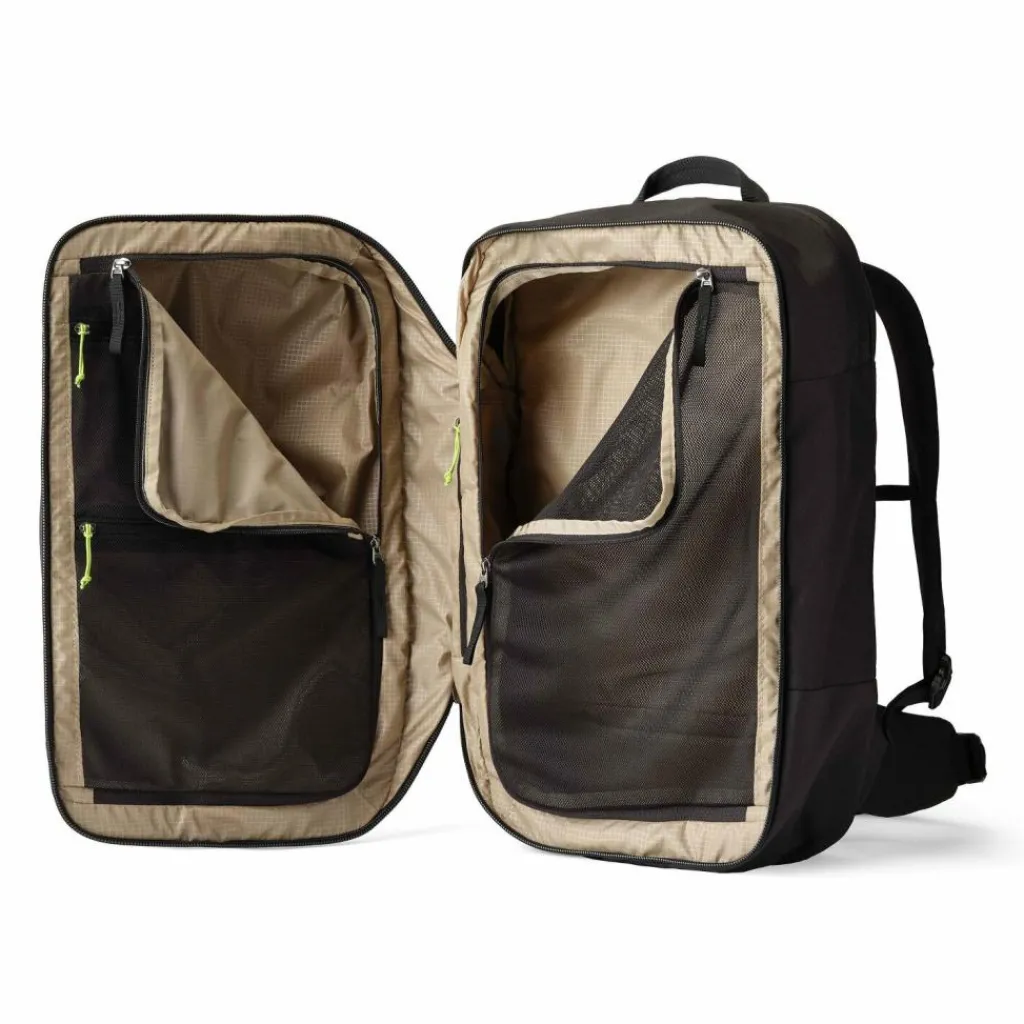 - Ausstattung: Wäschefach, Trinkflaschenfach, Tasche(n) außen, Rückenpolsterung, Reißverschlussfach, Netzfach, Brustgurt, Beckengurt