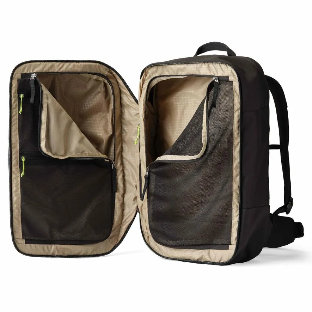- Ausstattung: Wäschefach, Trinkflaschenfach, Tasche(n) außen, Rückenpolsterung, Reißverschlussfach, Netzfach, Brustgurt, Beckengurt