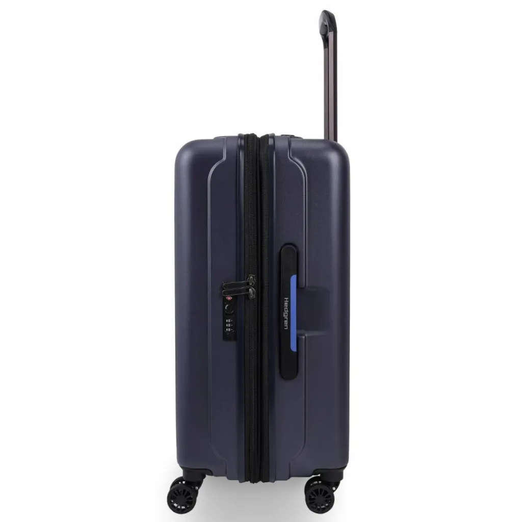 - Ausstattung: Tasche(n) innen, Reißverschlussfach, Netzfach, Dehnfalte, arretierbarer Griff