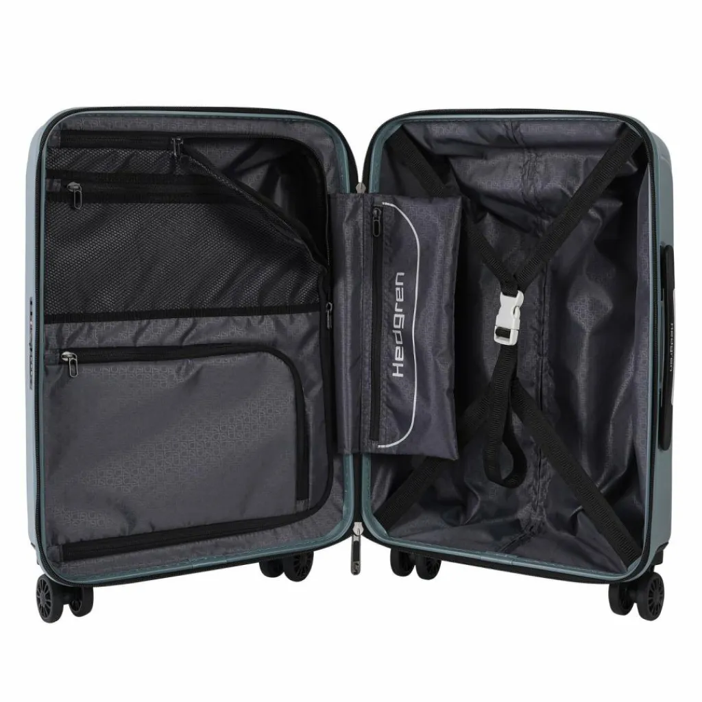 - Ausstattung: Tasche(n) innen, Reißverschlussfach, Netzfach, arretierbarer Griff