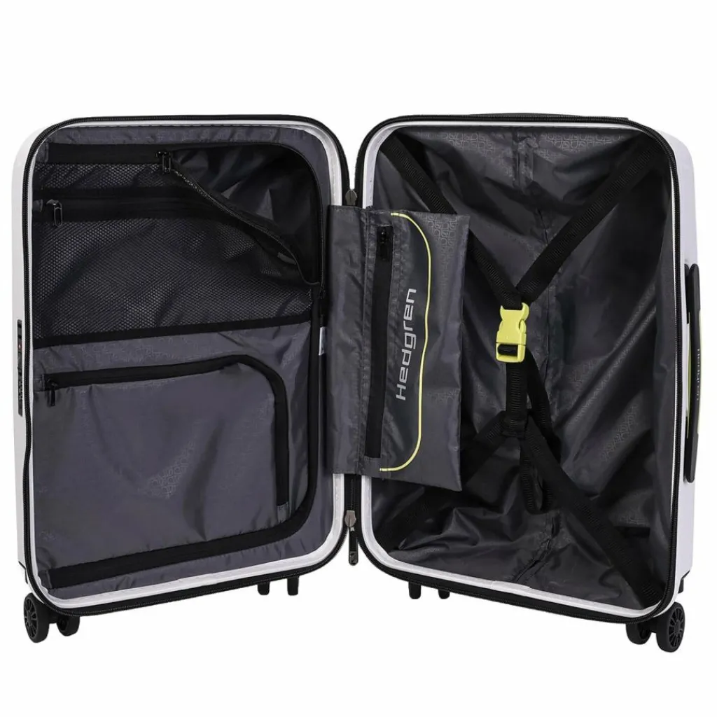 - Ausstattung: Tasche(n) innen, Reißverschlussfach, Netzfach, arretierbarer Griff