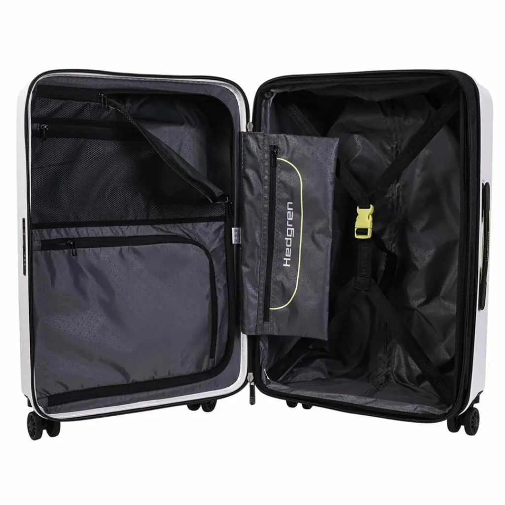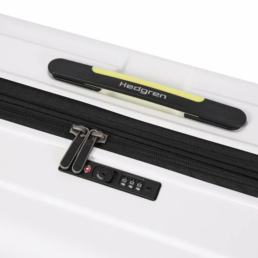 - Ausstattung: Tasche(n) innen, Reißverschlussfach, Netzfach, Dehnfalte, arretierbarer Griff