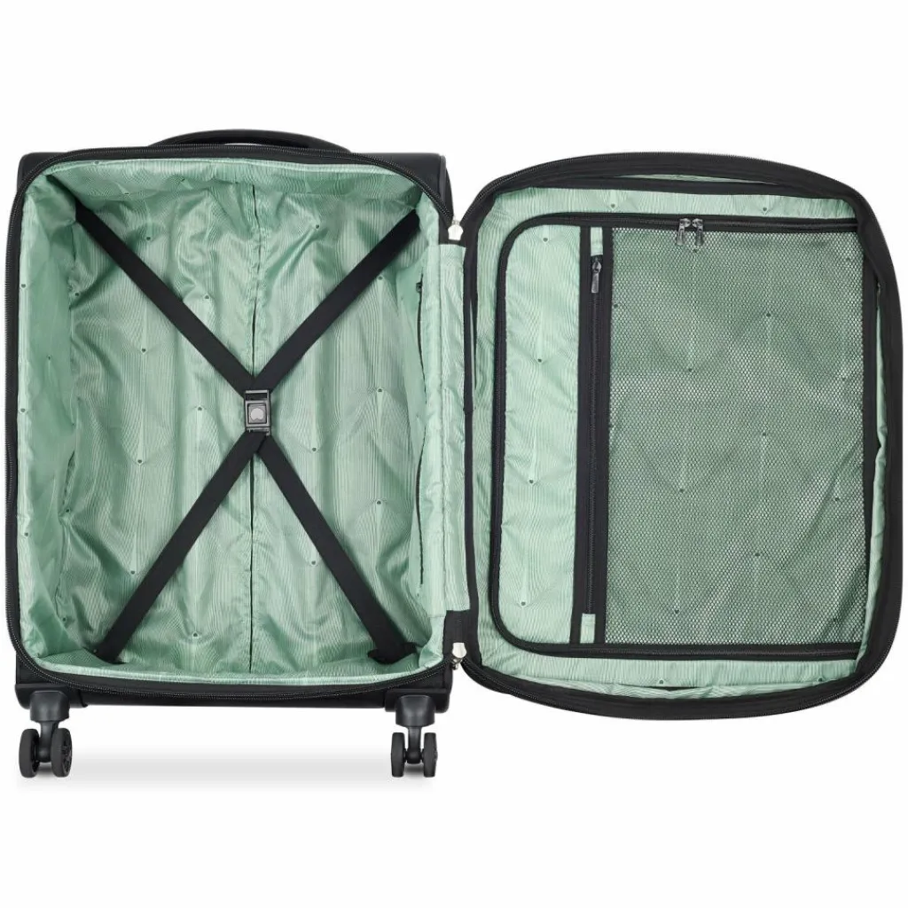 - Ausstattung:Tasche(n) innen, Tasche(n) außen, Reißverschlussfach, Netzfach, Dehnfalte, arretierbarer Griff