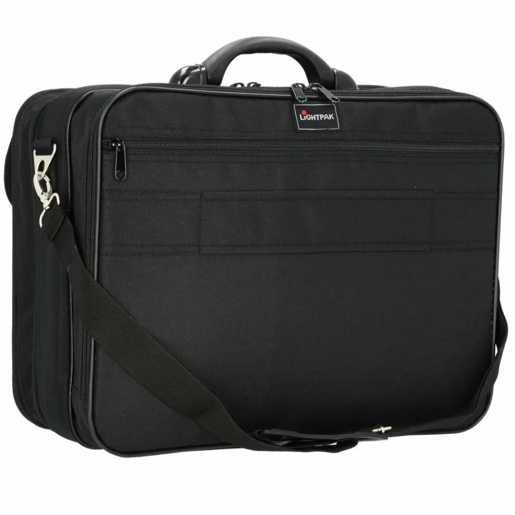 - Ausstattung:Tasche(n) innen, Tasche(n) außen, Reißverschlussfach, Platz für großen Aktenordner, Netzfach, Kreuzpackgurt, auf Trolley steckbar