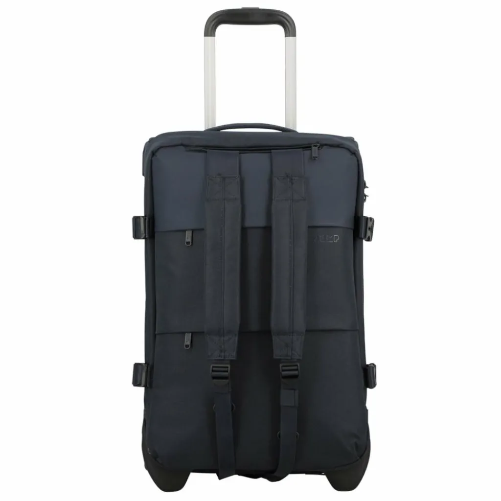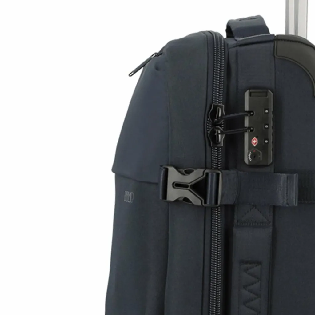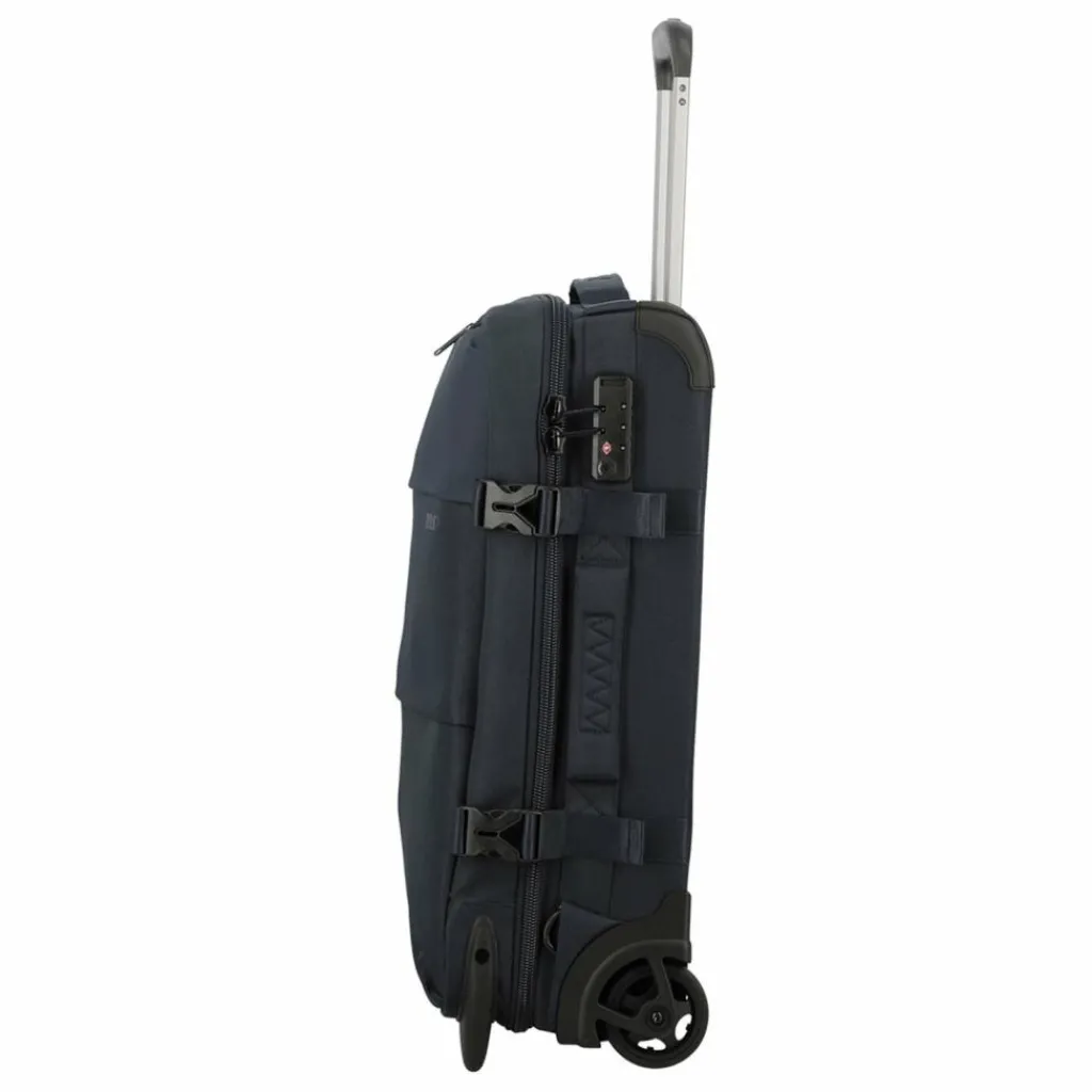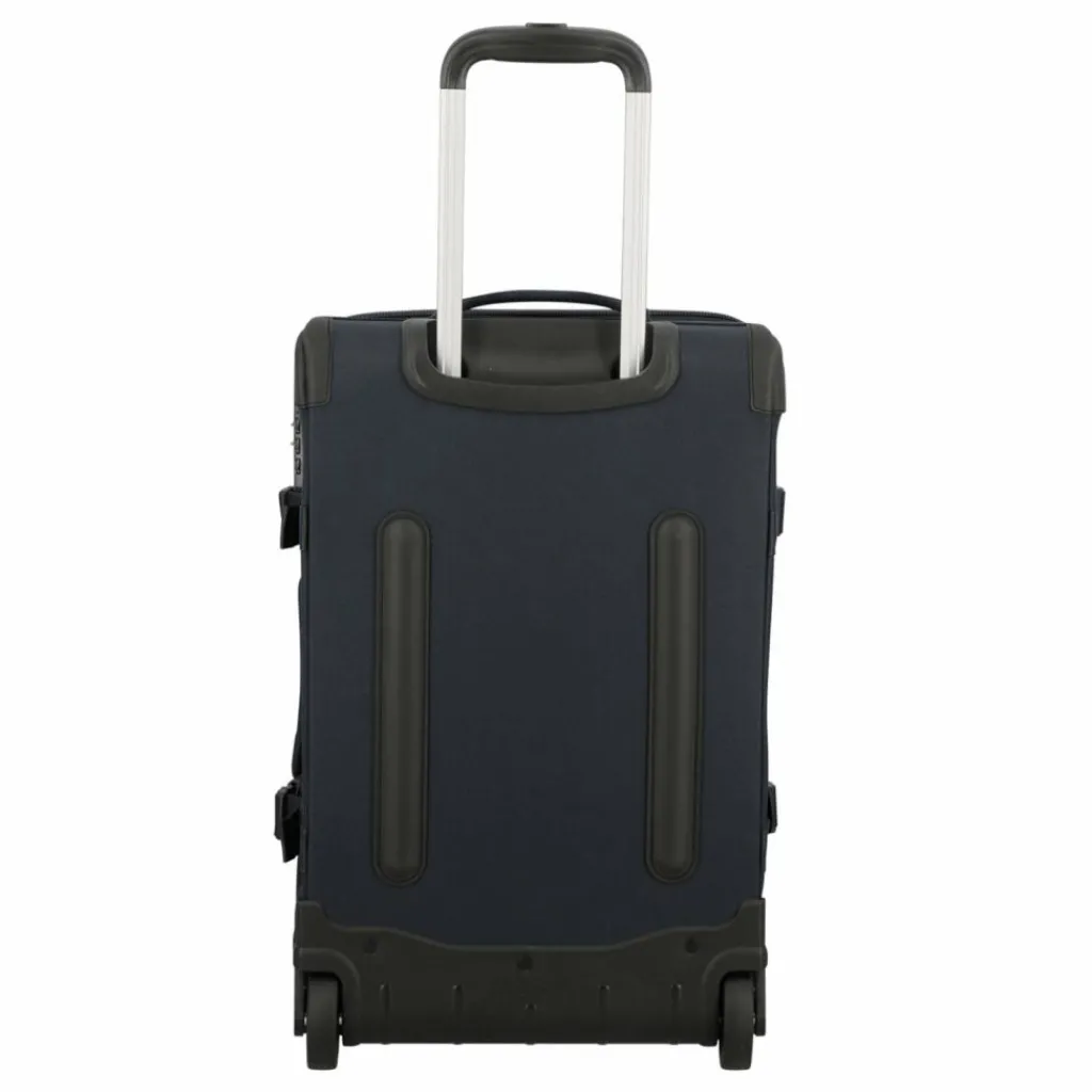 - Ausstattung: Wäschefach, Rucksackfunktion, Reißverschlussfach, Netzfach, Kompressionsriemen, arretierbarer Griff