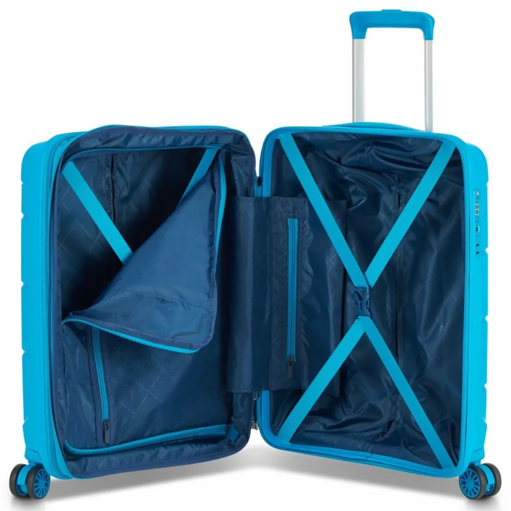 - Ausstattung: Wäschefach, Reißverschlussfach, Kreuzpackgurt, Dehnfalte, arretierbarer Griff