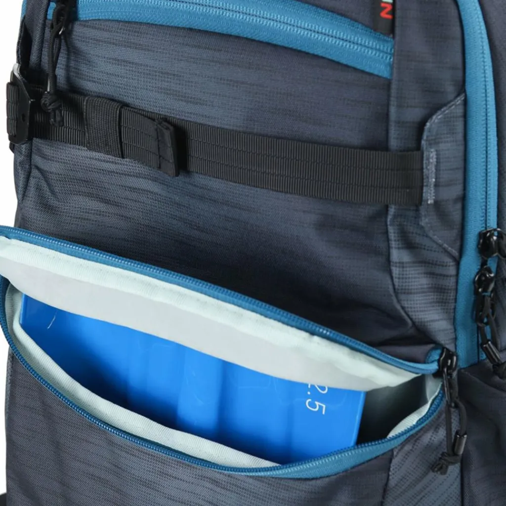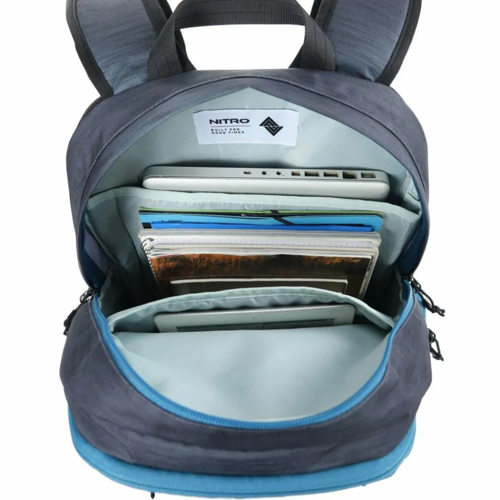 - Ausstattung: Trinkflaschenfach, Tasche(n) innen, Tasche(n) außen, Rückenpolsterung, Reißverschlussfach, Platz für kleinen Aktenordner, Platz für großen Aktenordner, Netzfach, ergonomisch geformtes Rückensystem, Brustgurt, Brillenschlaufe