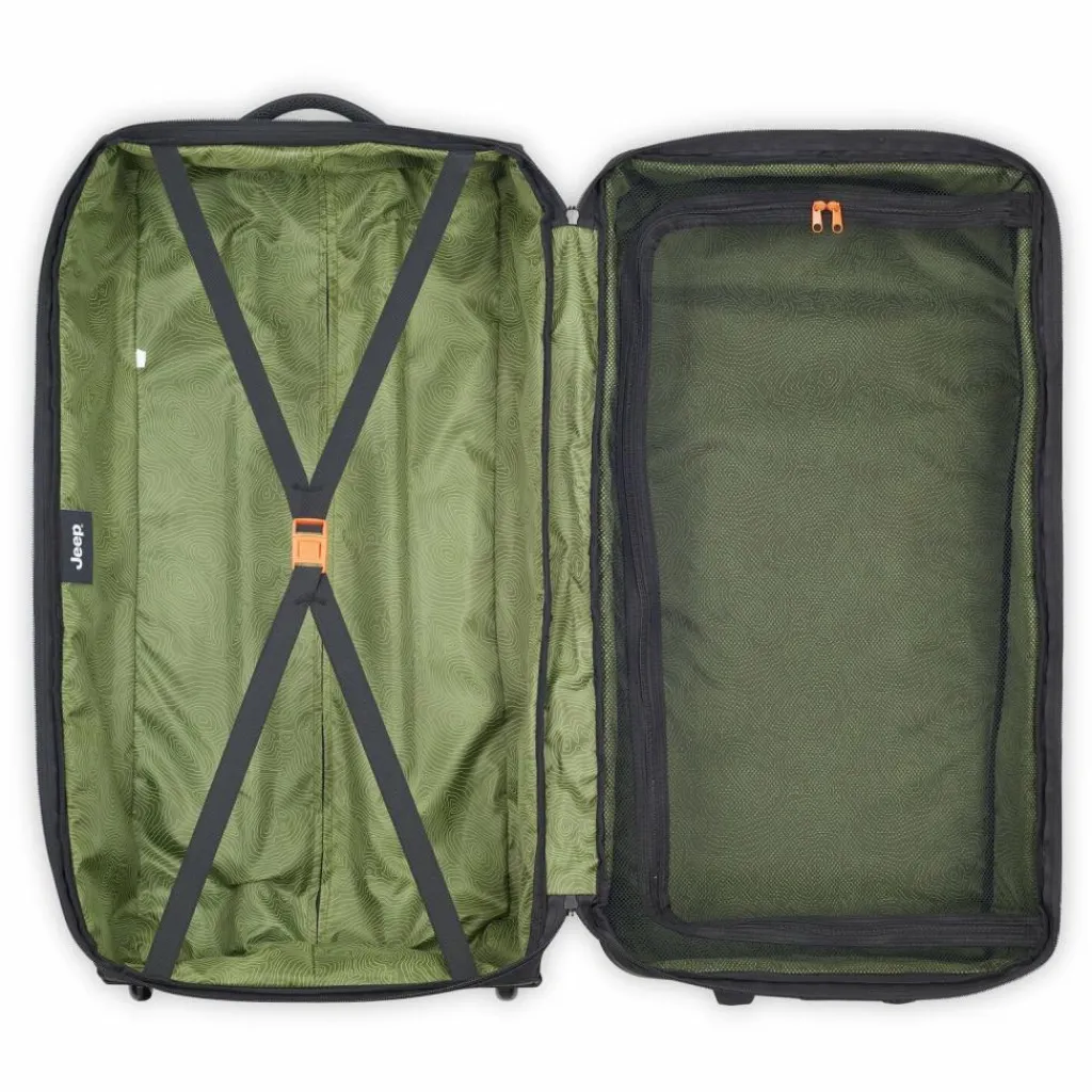 - Ausstattung:Wäschefach, Tasche(n) außen, Kreuzpackgurt, Kompressionsriemen, arretierbarer Griff