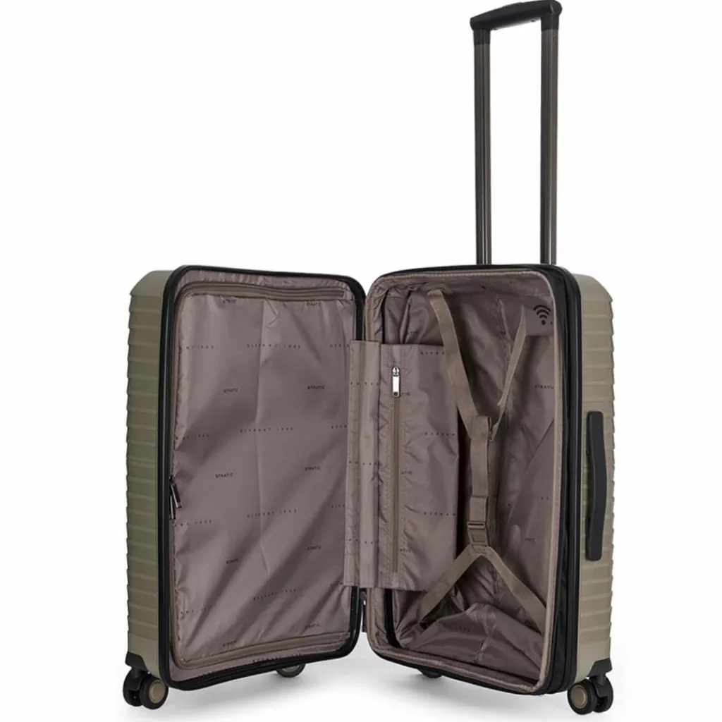 - Ausstattung:Wäschefach, Reißverschlussfach, Kreuzpackgurt, Dehnfalte, arretierbarer Griff