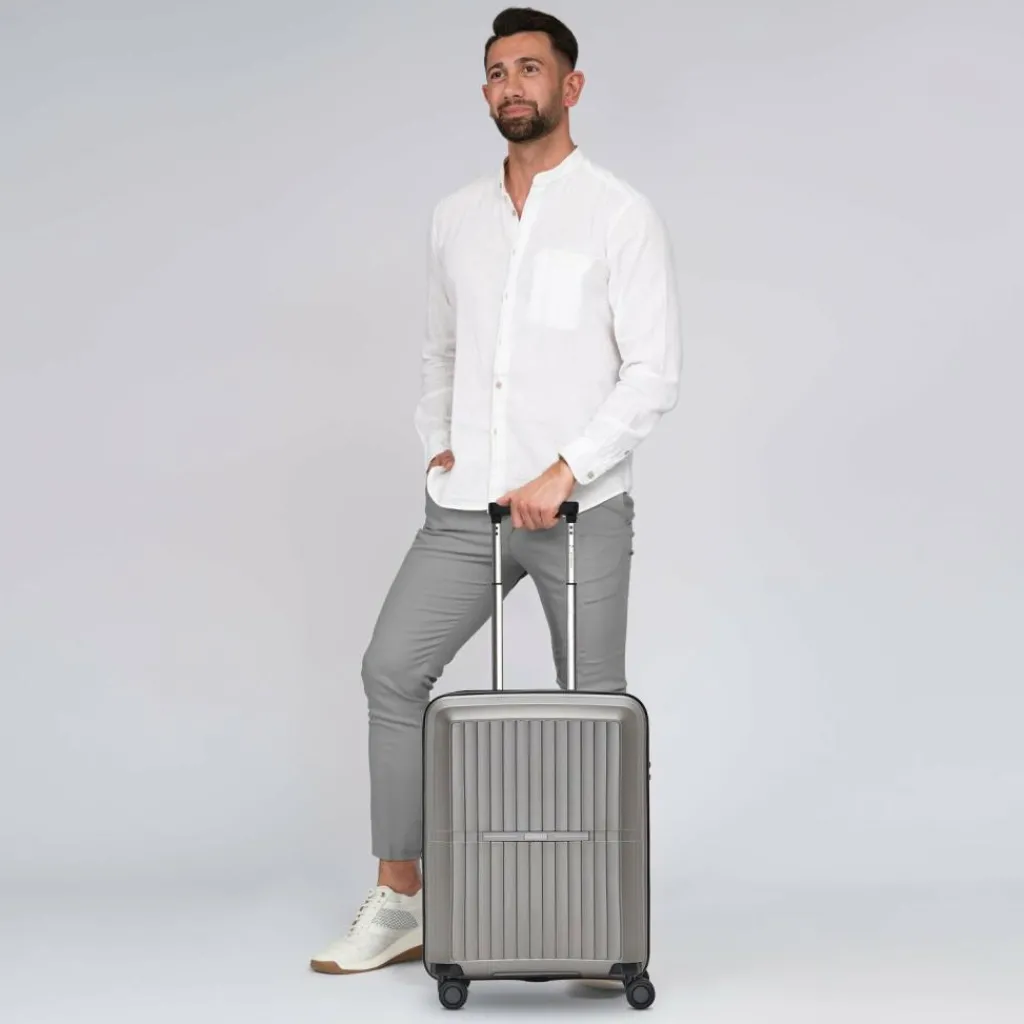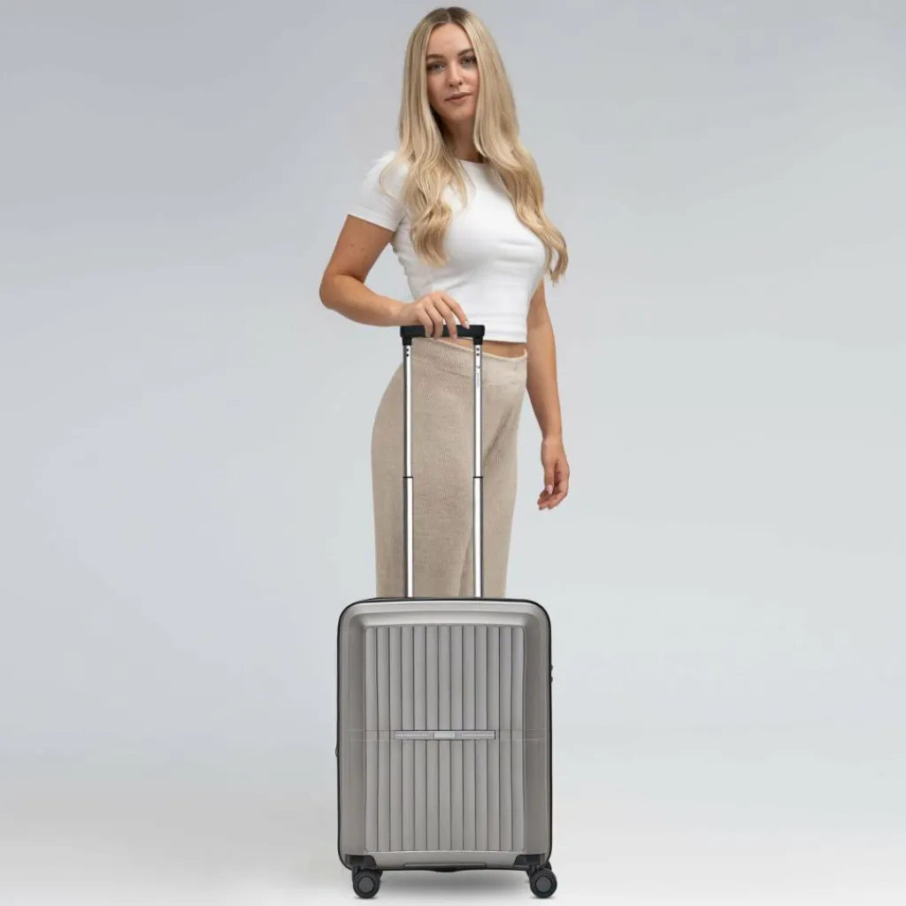 - Ausstattung: Tasche(n) innen, Reißverschlussfach, Kreuzpackgurt, Dehnfalte, arretierbarer Griff