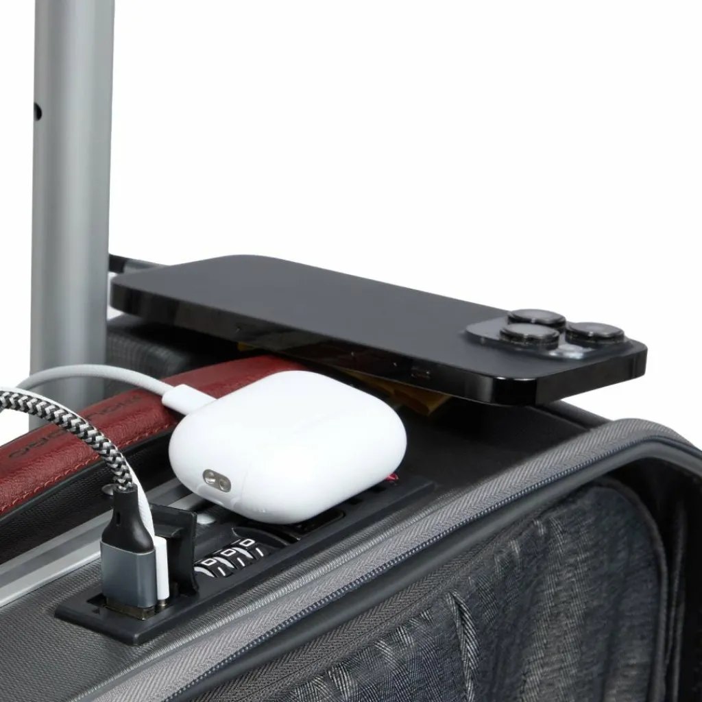 - Ausstattung: Trenn-/Packplatte, Tasche(n) innen, Reißverschlussfach, Netzfach, arretierbarer Griff, Anschluss für Micro-USB-Powerbank