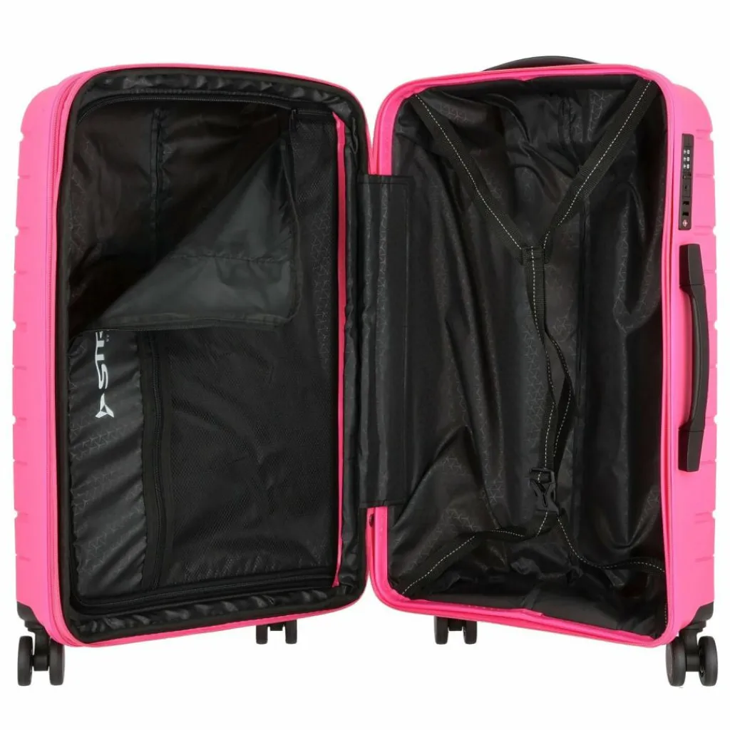 - Ausstattung: Wäschefach, Reißverschlussfach, Kreuzpackgurt, Dehnfalte