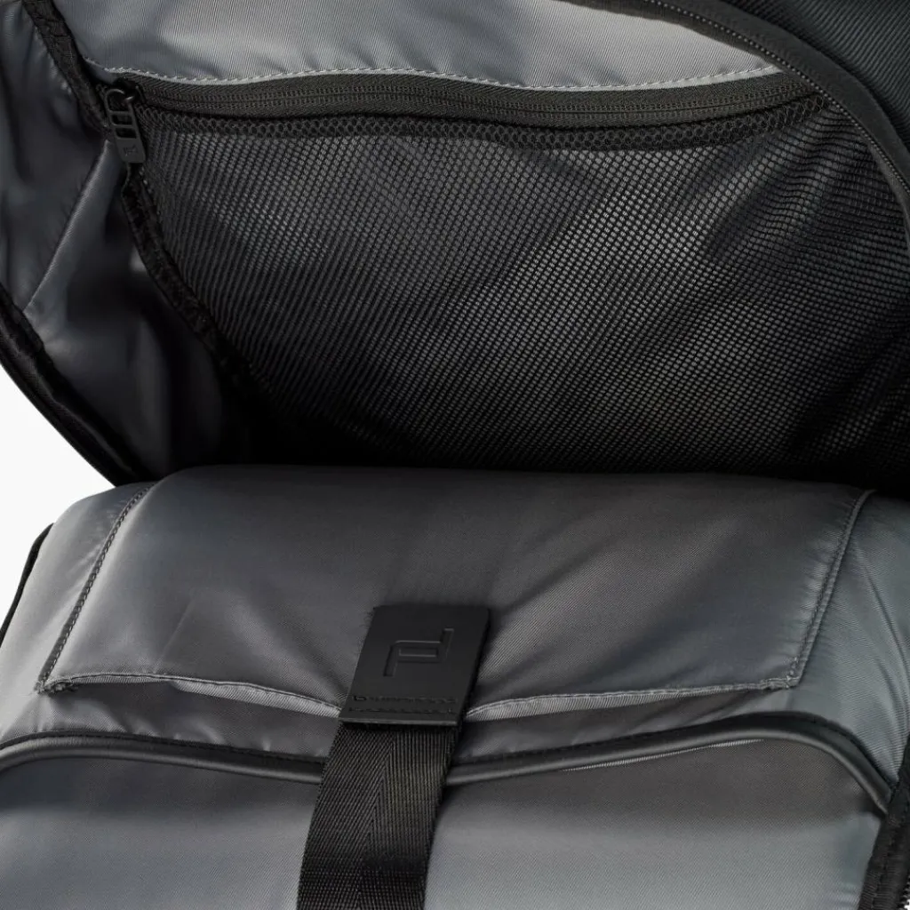 - Ausstattung: Tasche(n) innen, Tasche(n) außen, Rückenpolsterung, Reißverschlussfach, auf Trolley steckbar