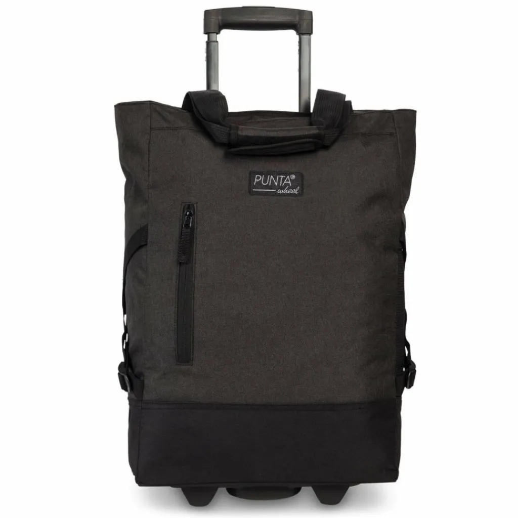 - Ausstattung: Tasche(n) innen, Tasche(n) außen, Reißverschlussfach, arretierbarer Griff