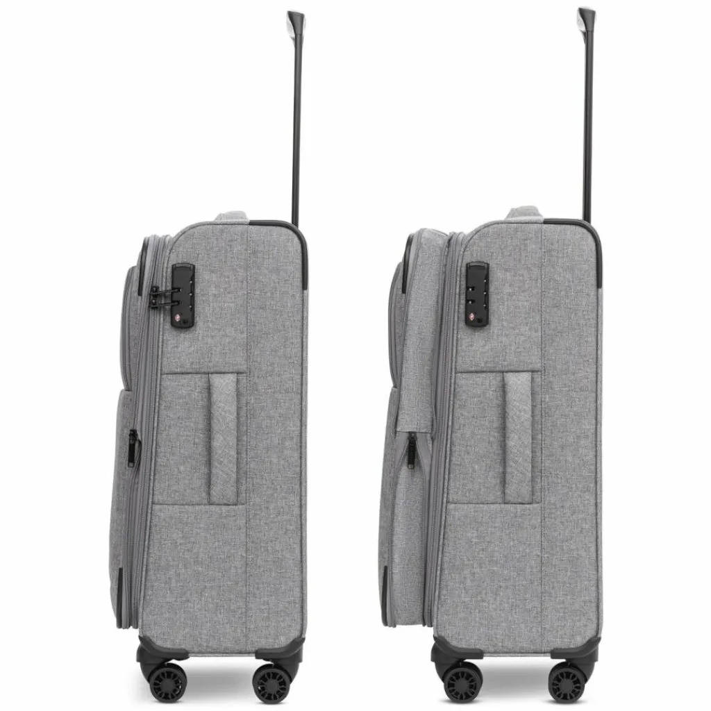 - Ausstattung: Wäschefach, Tasche(n) außen, Reißverschlussfach, Kreuzpackgurt, Dehnfalte, arretierbarer Griff