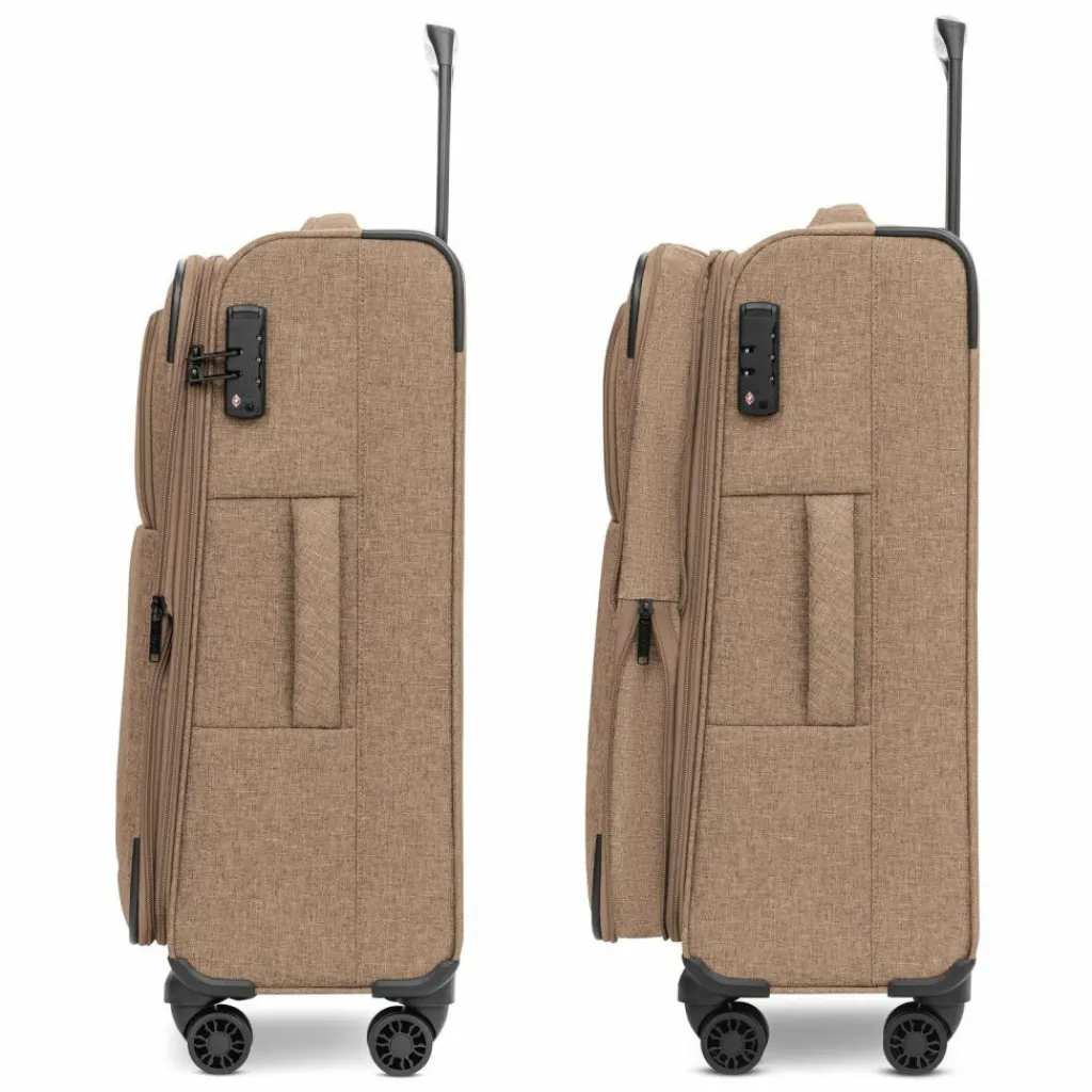 - Ausstattung: Wäschefach, Tasche(n) außen, Reißverschlussfach, Dehnfalte, arretierbarer Griff