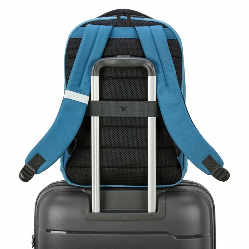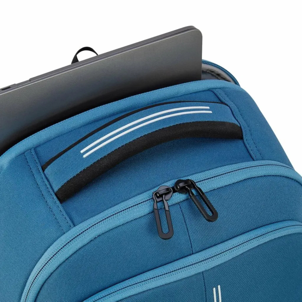 - Ausstattung: Trinkflaschenfach, Tasche(n) innen, Tasche(n) außen, Rückenpolsterung, Reißverschlussfach, Kreditkartenfächer, Handyfach, Brillenschlaufe, auf Trolley steckbar
