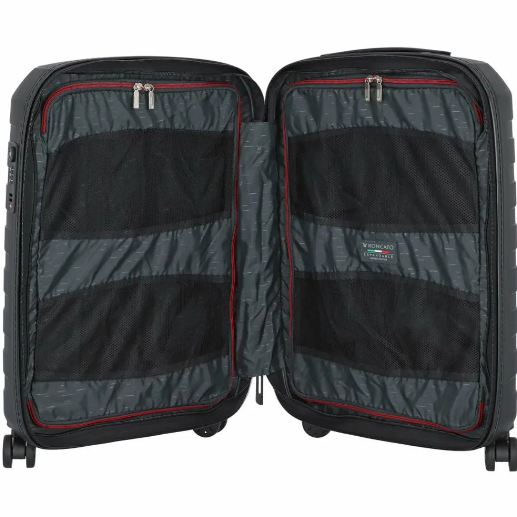 - Ausstattung: Tasche(n) innen, Reißverschlussfach, Netzfach, Dehnfalte, arretierbarer Griff